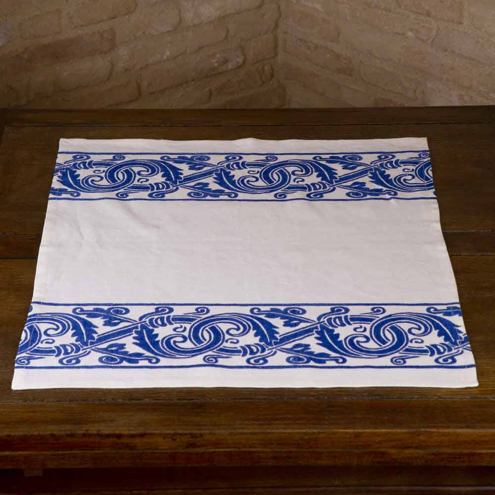 Paño de cocina estampado a mano de alta artesanía con diseño antiguo, disponible en tres variantes, creación artística italiana exclusiva.