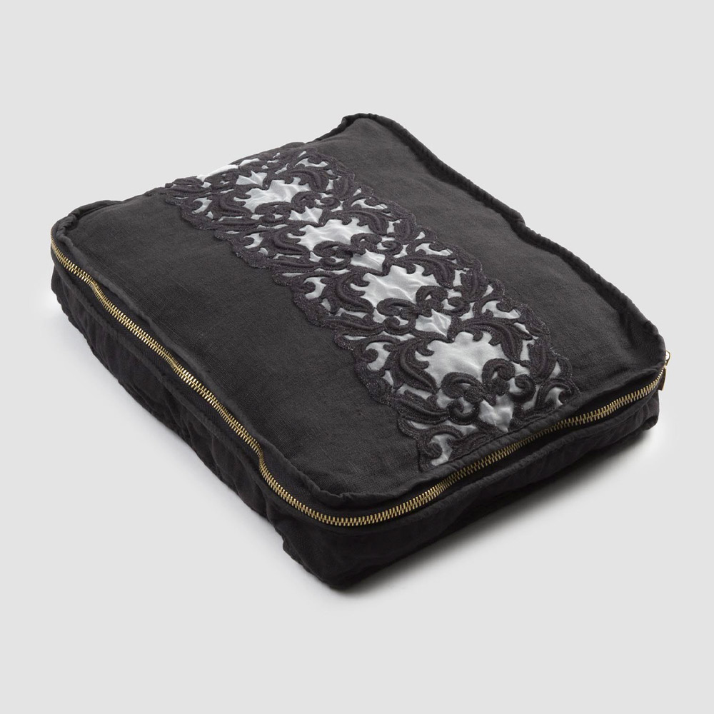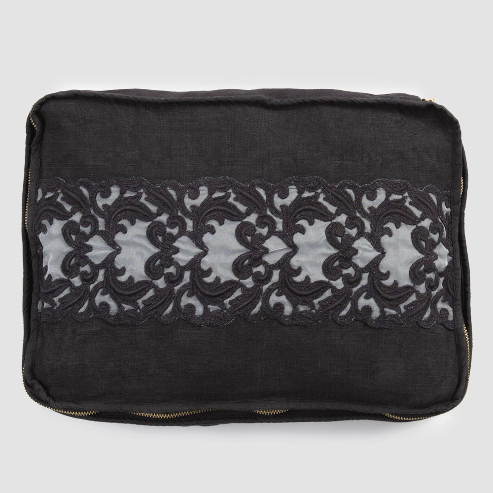 Neceser rectangular de lino y algodón con cremallera y encaje Farnesio, fabricado en Italia.