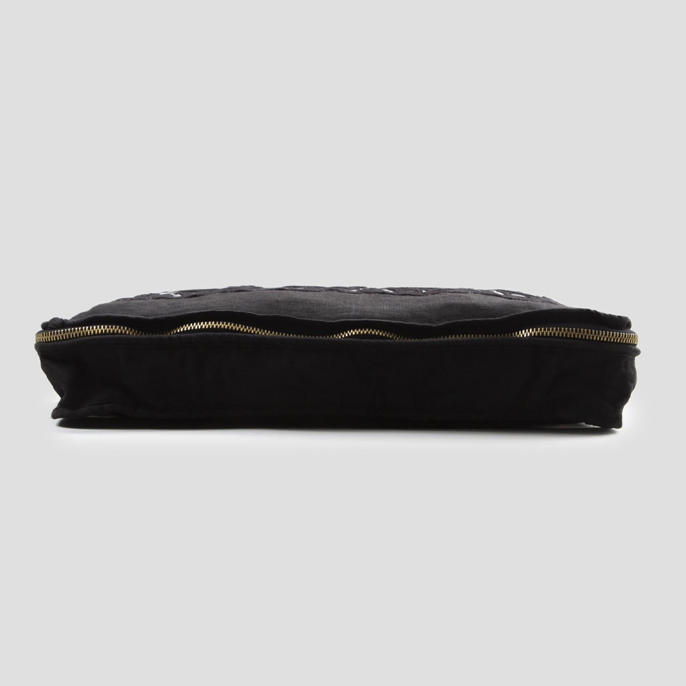 El valor de la tradición se une al estilo de vida moderno con este gran neceser rectangular de lino y algodón con encaje farneso y cremallera.