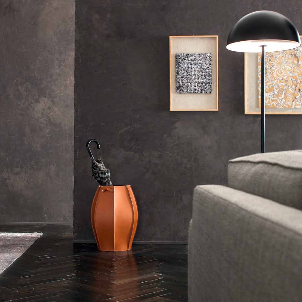. Audrey è un paragüero caracterizado por formas sinuosas y elegantes, creado por la mano de hábiles artesanos especializados en el trabajo del cuero. La producción è es artesanal y tiene lugar íntegramente en Italia. Audrey puede utilizarse para completar el mobiliario de una oficina, la entrada de una casa o un entorno contract. Está realizada en piel regenerada, tanto en el interior como en el exterior, con una base multicapa, también revestida en piel. En su interior cuenta con una bandeja recogegotas de plástico.