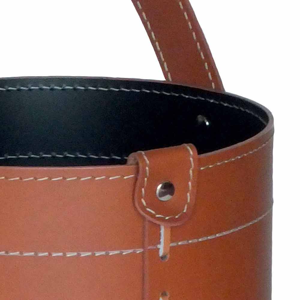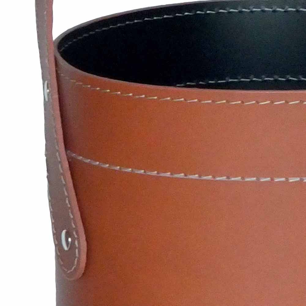 Está hecho completamente de cuero regenerado, tanto interno como externo, con costuras visibles. El fondo está hecho de madera contrachapada, también cubierta en cuero. En la introducción hay una práctica bandeja de goteo de plástico. Diferentes colores están disponibles, elige el que prefieras.