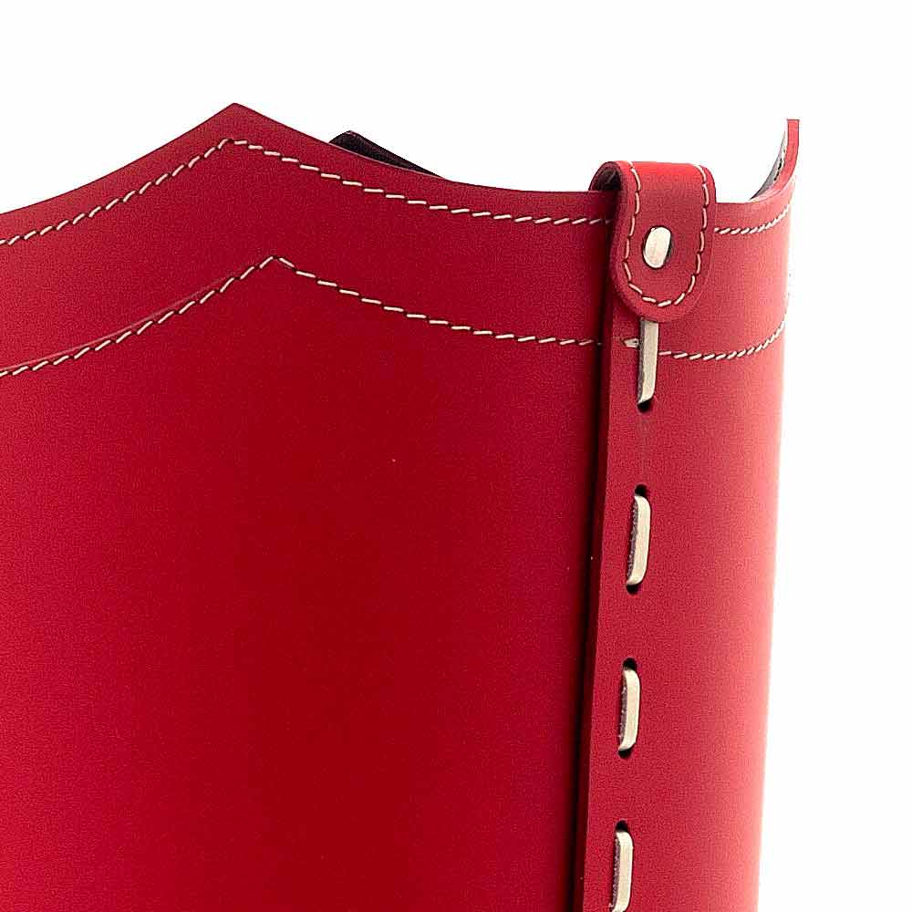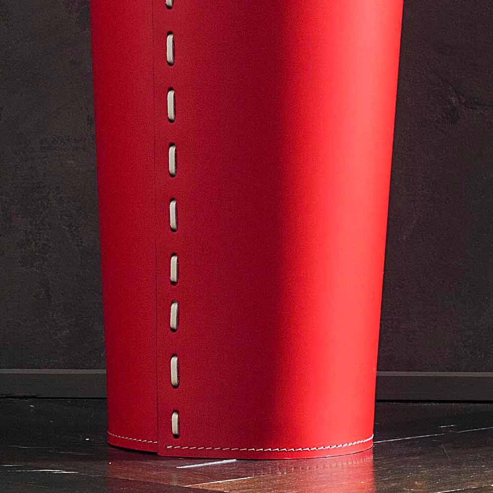 La sombrilla está hecha de cuero regenerado, tanto por dentro como por fuera. El fondo está en contrachapado, que también está cubierto. En el interior hay una práctica bandeja de goteo de plástico.