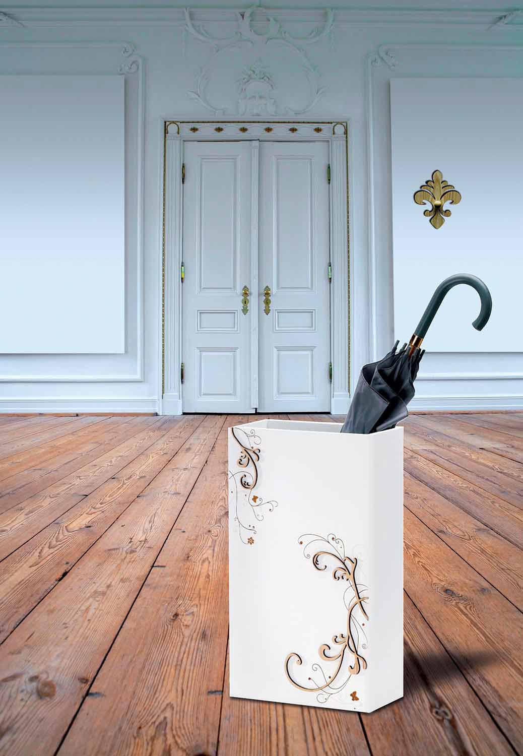 paragüero de madera lacada con aplicaciones de decoración con clase.