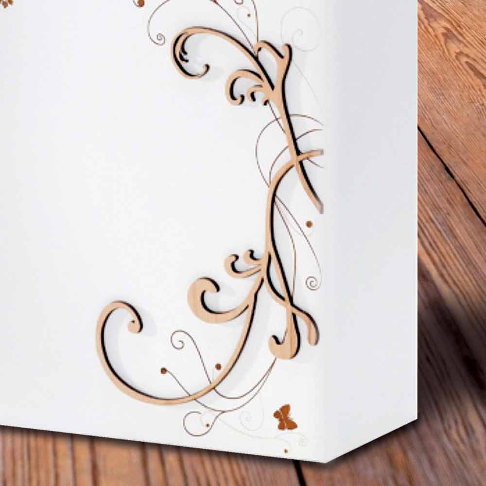 Dimensiones: Material: - Madera lacada en forma de corte láser con aplicación decorativa de madera