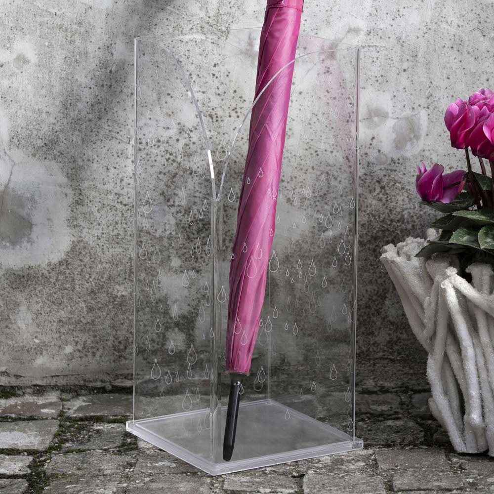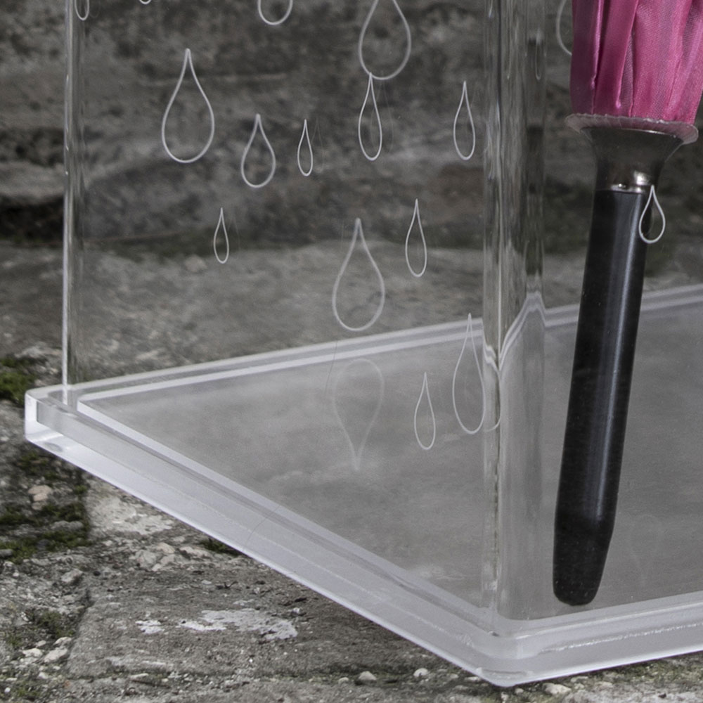 Paragüero en cristal acrílico transparente con gotas de decoración fabricado en Italia.