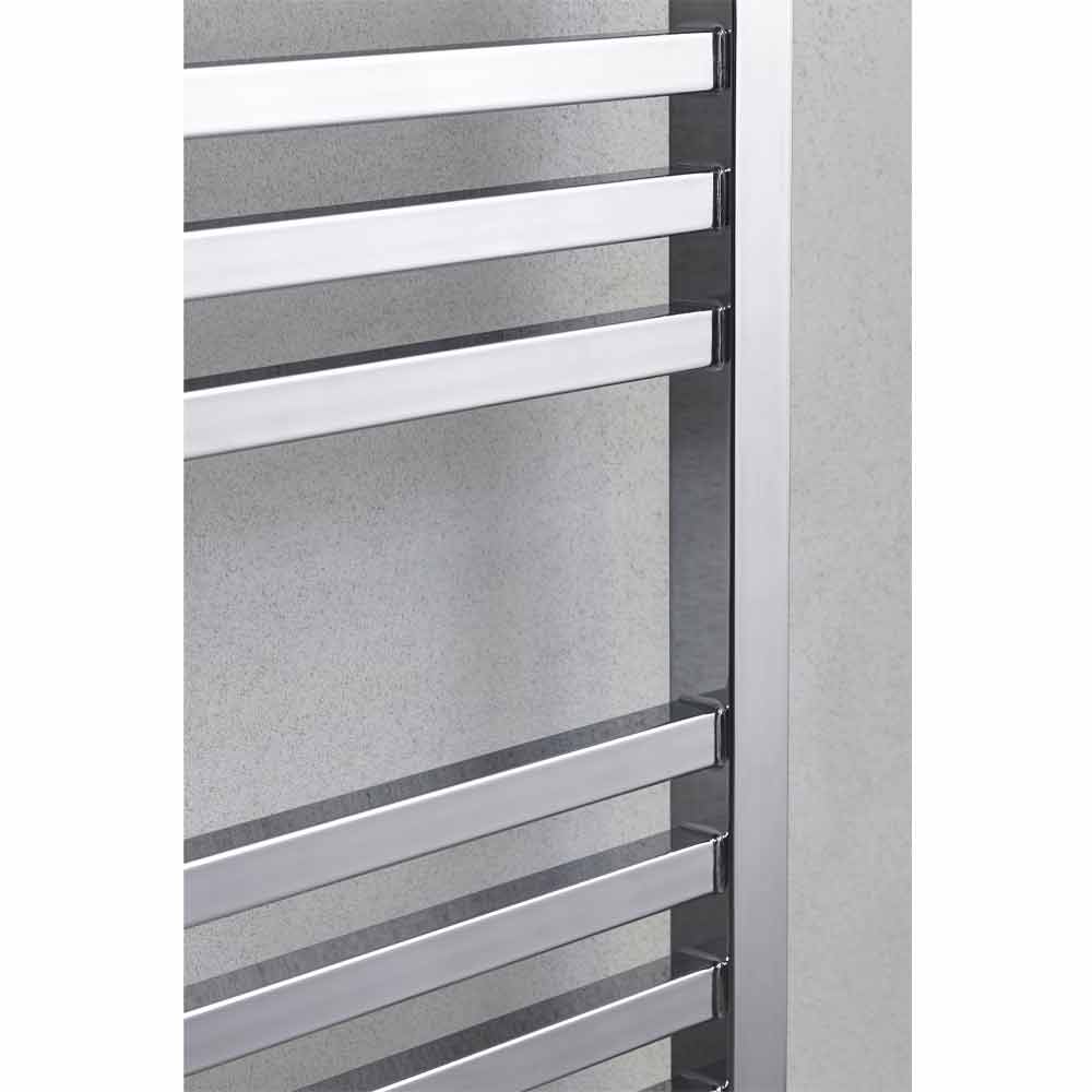 Radiador toallero hidráulico de diseño cuadrado cromado en acero, fabricado en Italia.