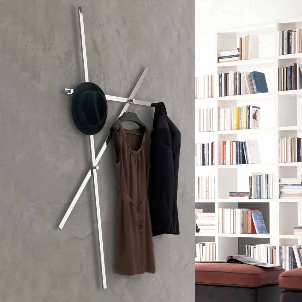 Perchero moderno Aplique de pared fabricado en Italia con estructura de metal pintado equipado con 5 ganchos a juego. Un diseño estilizado caracterizado por líneas simples que juega con el uso de formas geométricas para enriquecer la estética del producto con personalidad. Los acabados disponibles lo convierten en una solución de decoración particularmente versátil , por lo tanto adaptable a cualquier estancia de la casa con un gusto moderno en el que completa el mobiliario creando una maravillosa armonía de estilos. El perchero es un mueble fundamental en todo hogar y debe cumplir con los requisitos tanto de funcionalidad como de diseño. De hecho, la estética es importante, ya que crea una armonía con los elementos circundantes y proporciona una solución práctica y resistente sobre la que colocar chaquetas, abrigos y bolsos al regresar a casa. Esta percha encarna estas características fundamentales, demostrando ser una elección perfecta, capaz de satisfacer cualquier solicitud de la forma más exclusiva.