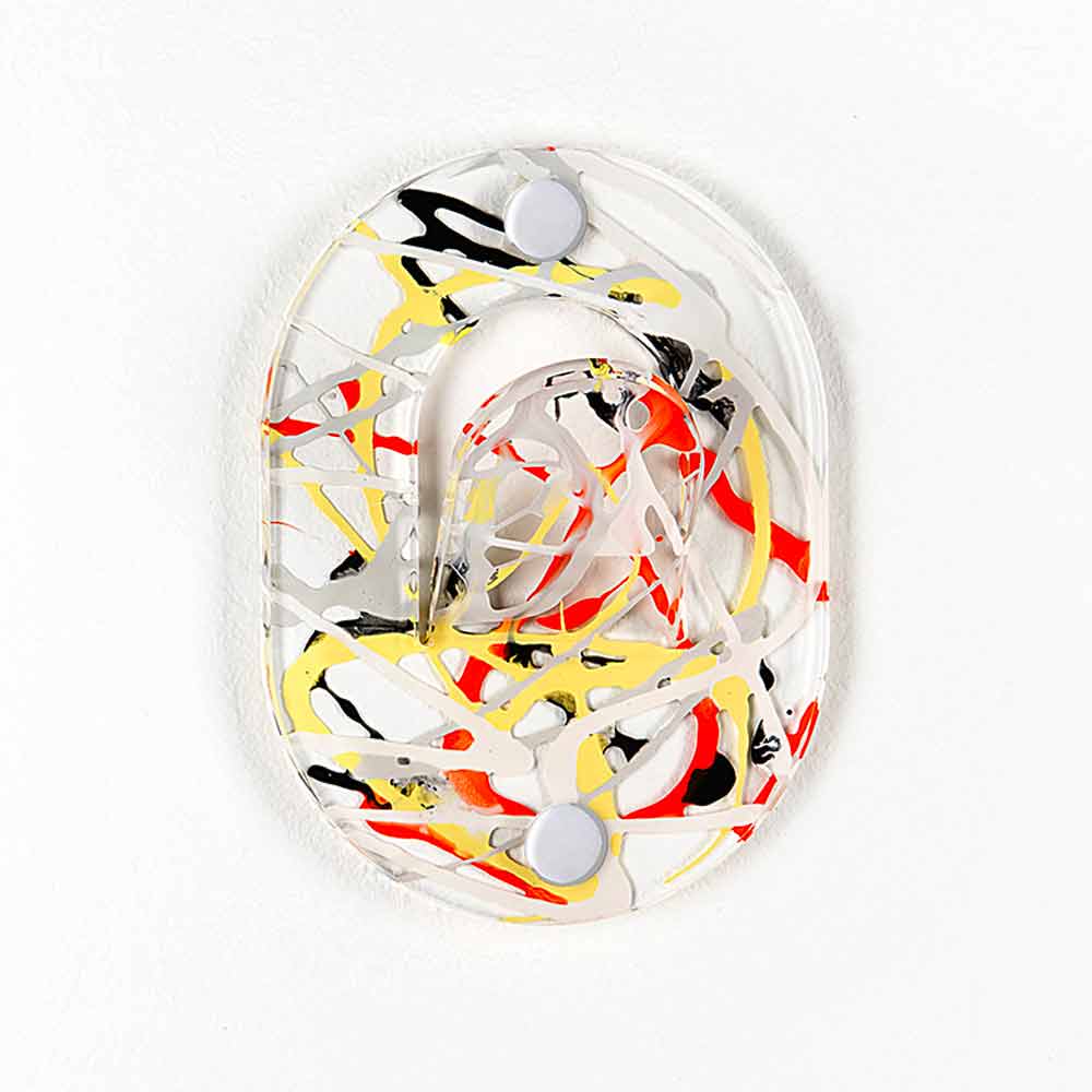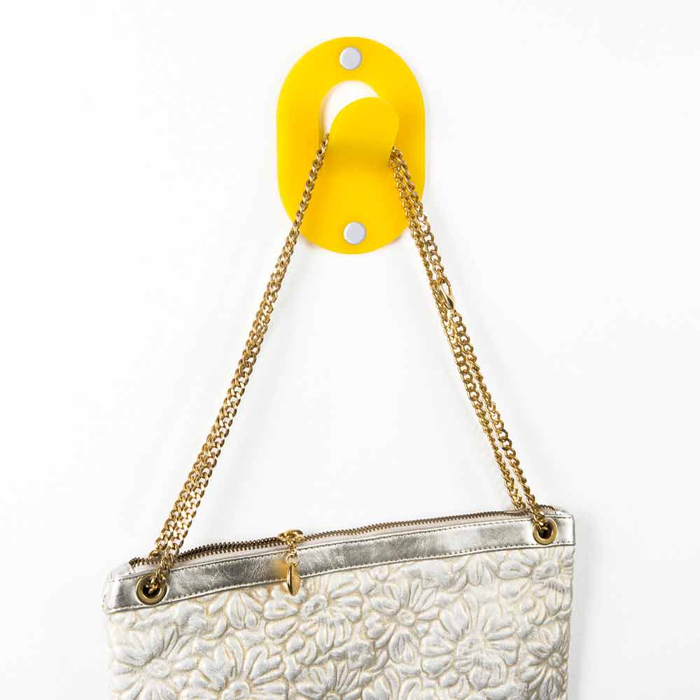 5 perchas de pared de colores en plexiglás cortado a láser con diseño de clip fabricado en Italia.
