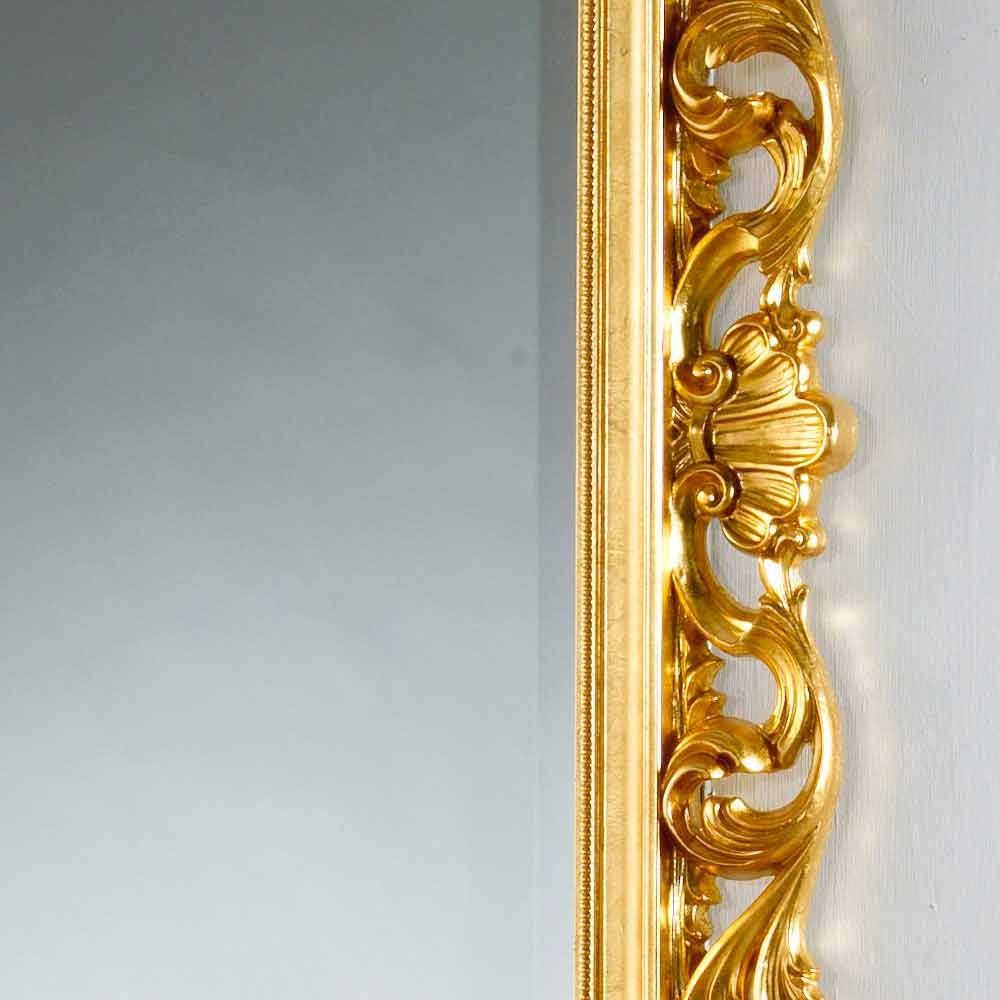 El espejo Mata se caracteriza por una artesanía llevó a cabo utilizando materiales de alta calidad y el uso de la experiencia de artesanos italianos expertos. El bastidor está hecho de madera decoradas con tallas. acabado en pan de oro. Espejo con vidrio biselado, de 4 mm de espesor. Made in Italy.