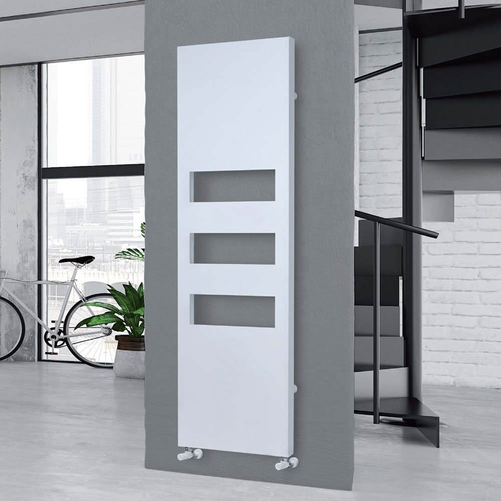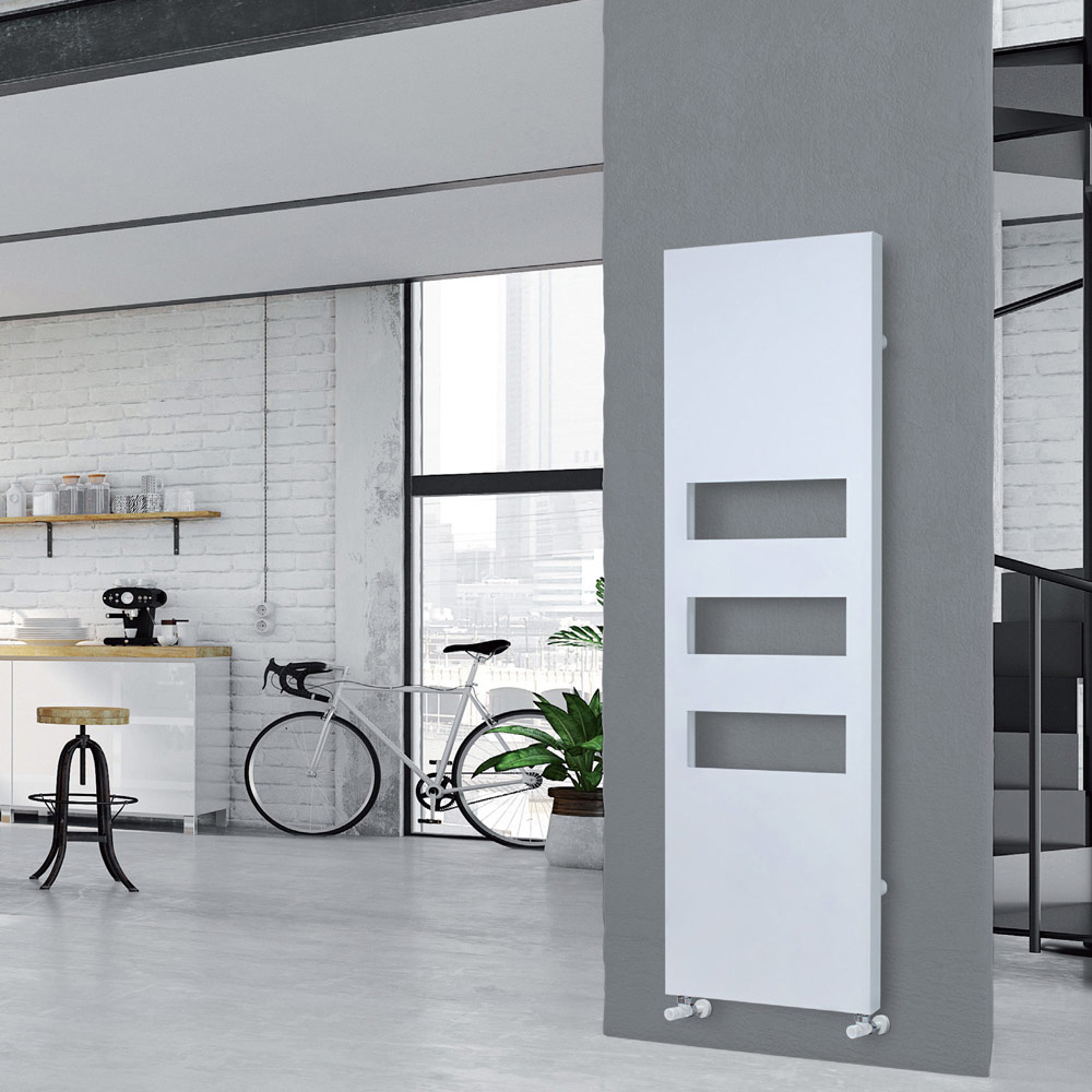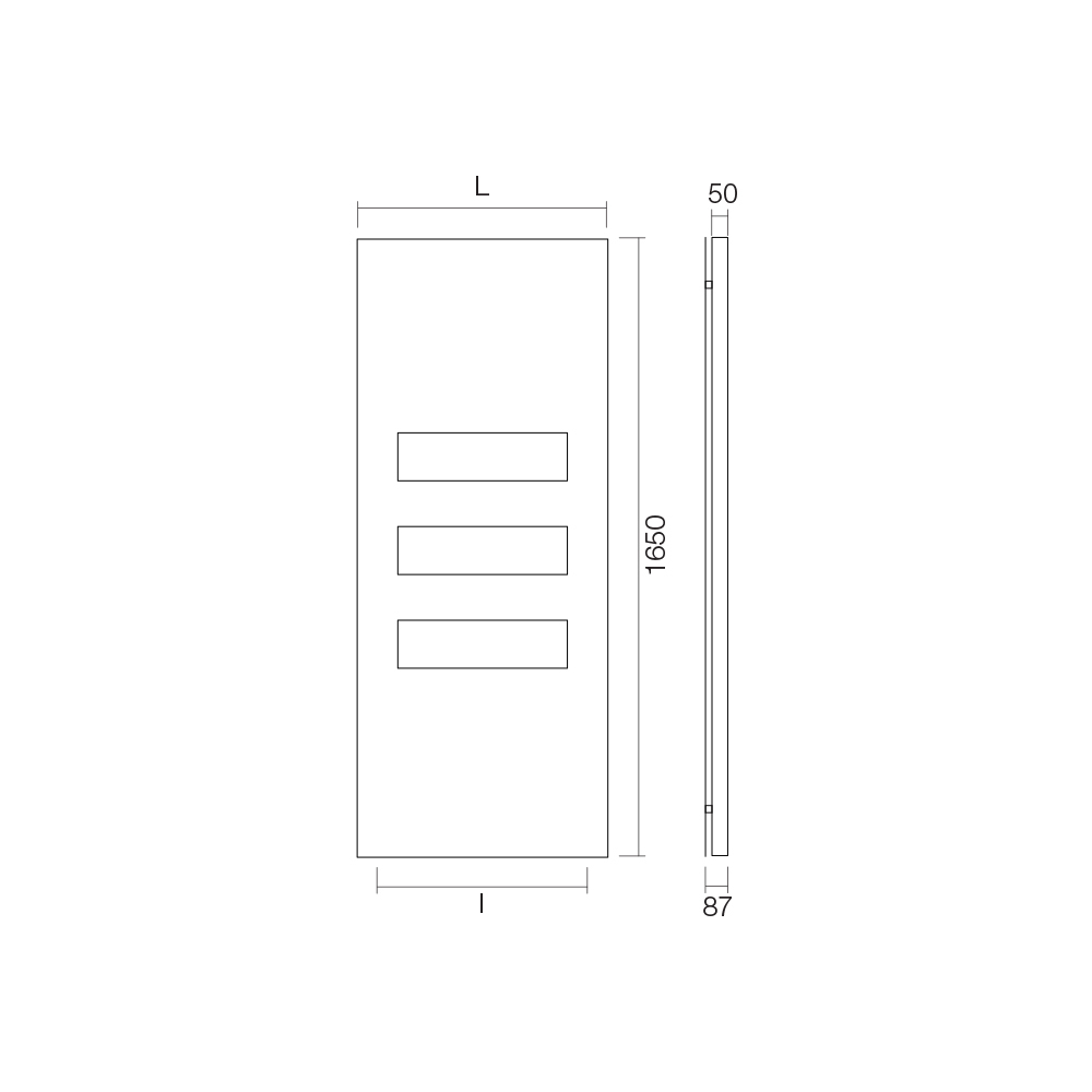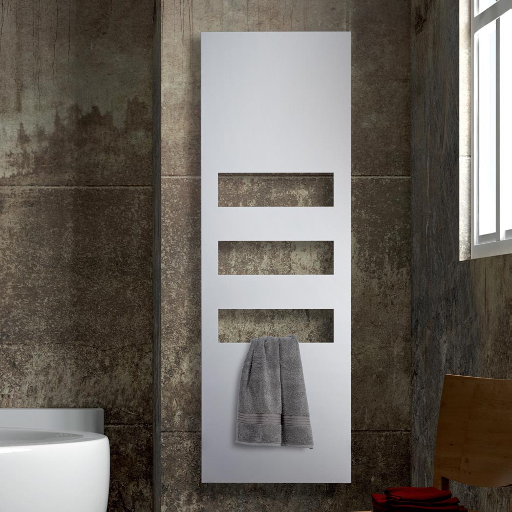 Placa radiante híbrida en acero al carbono con 3 orificios rectangulares íntegramente fabricado en Italia con kit de fijación a la pared, válvula de ventilación y tapón ciego incluidos .