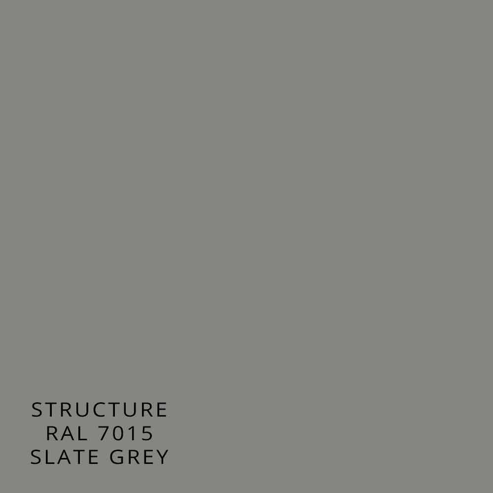 - combinación 5: estructura RAL 7015 gris pizarra rugosa mate y tejido bifaz RAL 5013/5020 azul / verde petróleo.
