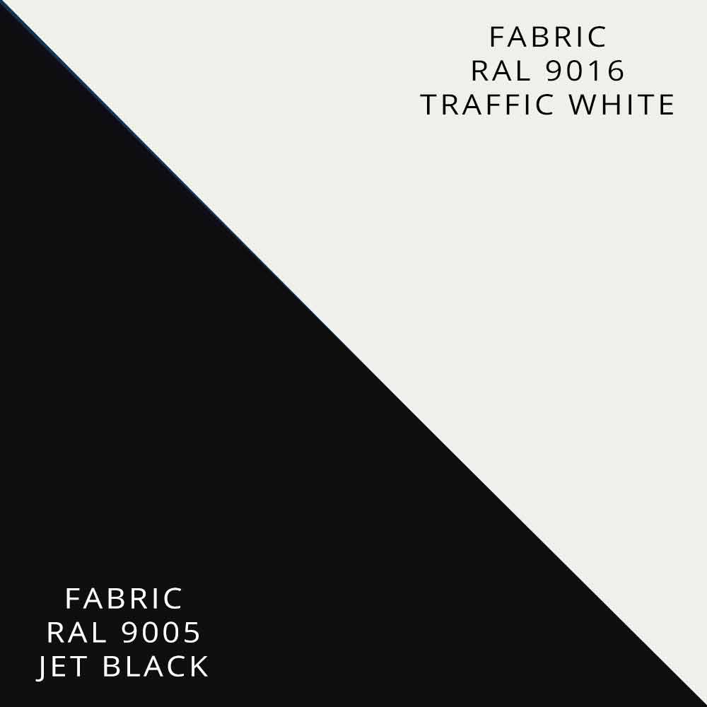 - combinación 7: estructura negra rugosa mate y tejido bifaz RAL 9005/9016 negro / blanco.