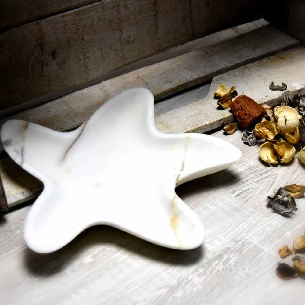 Platillo con forma de estrella de mar fabricado en mármol satinado de diseño Made in Italy.