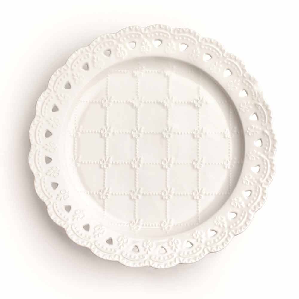 plato de porcelana de alta calidad fue creado para decorar la mesa con refinada belleza y romance. Utilizado como un regalo de bodas debido a su carácter altamente elegante y refinado, su peculiaridad está dada por la marcada finura estética, enriquecida por los bordes refinados con