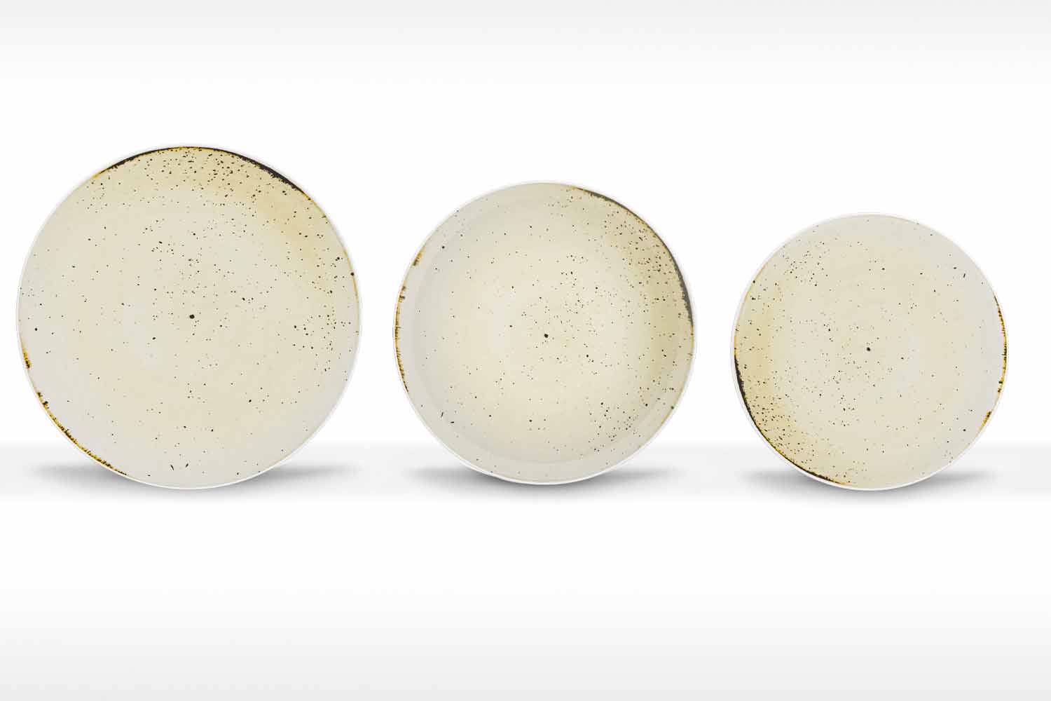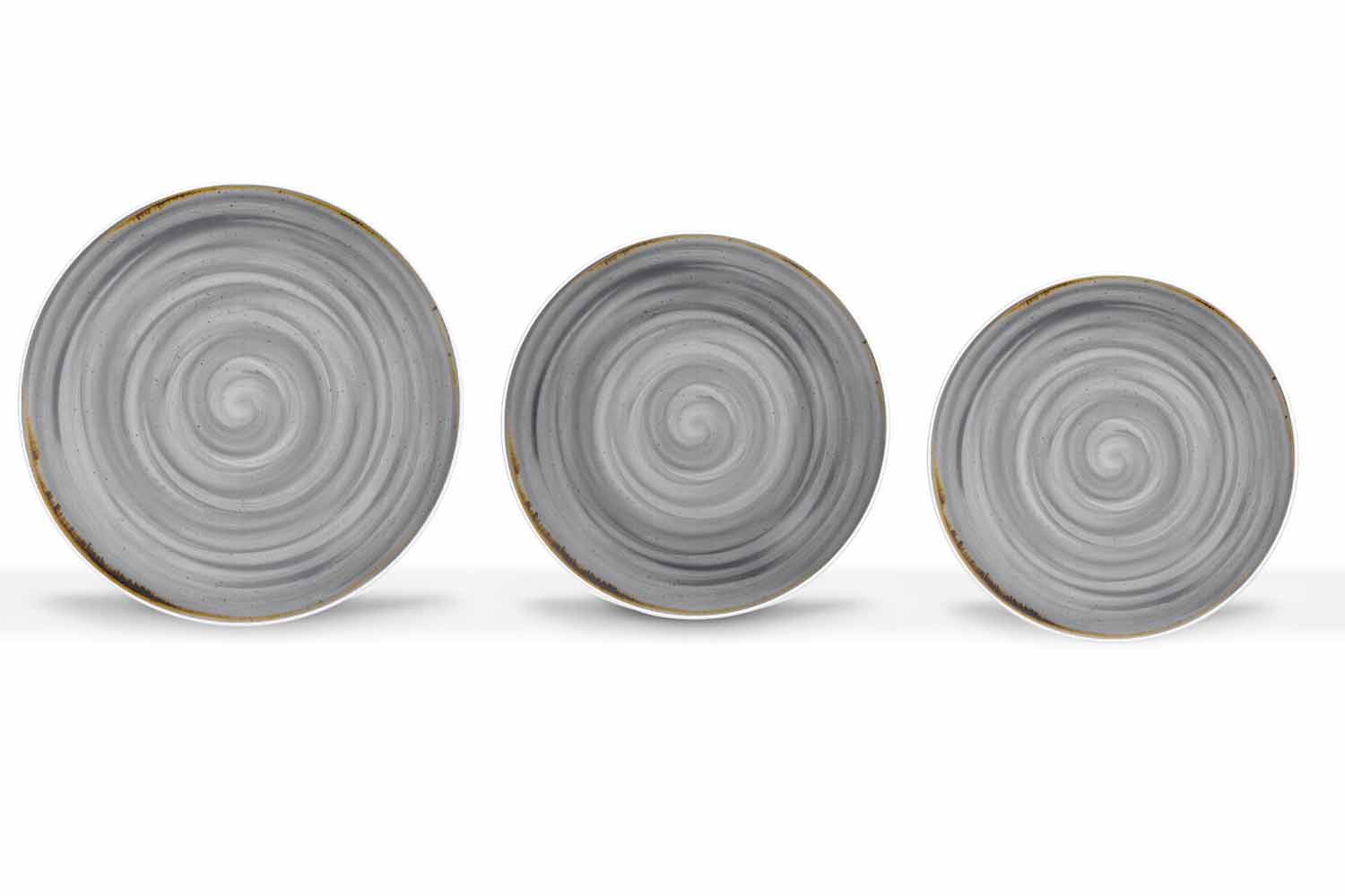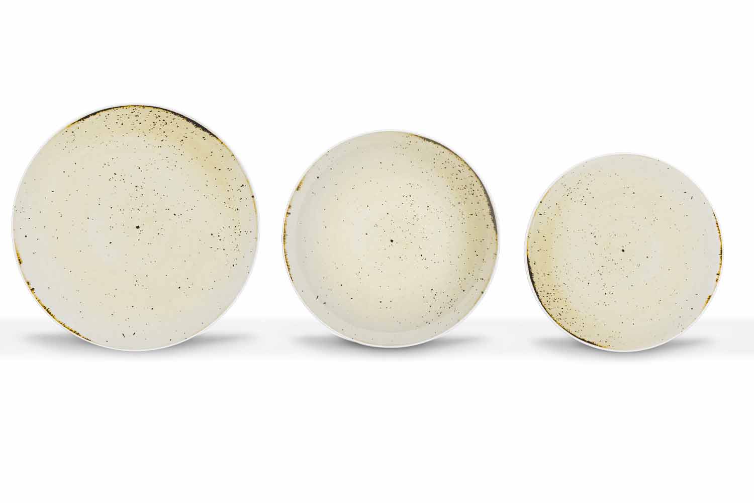 Plato llano moderno de diseño rústico en porcelana de colores, 18 piezas.