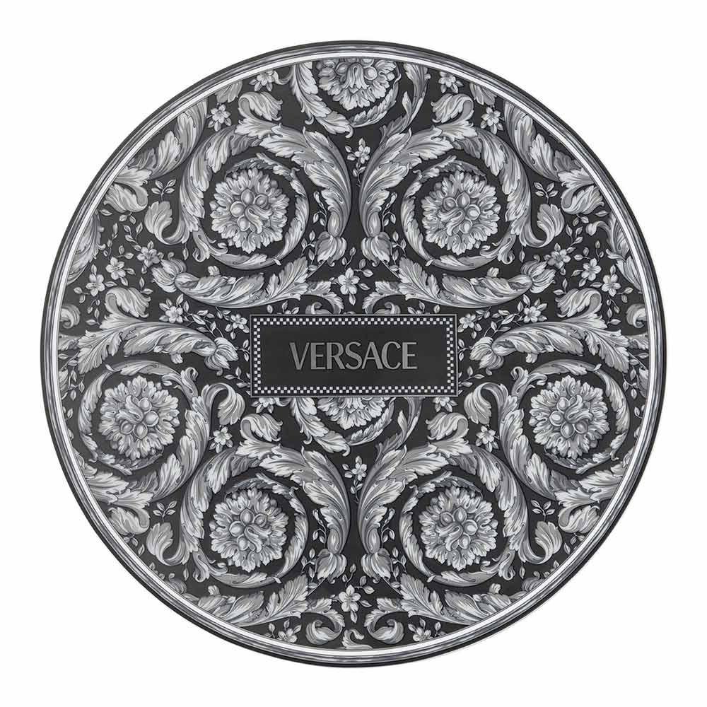 Este plato de porcelana único captura la esencia del lujo y la elegancia con su intrincado diseño de flores y volutas. El patrón floral en tonos de gris y negro añade una profundidad visual sorprendente, lo que hace que este plato no solo sea un objeto funcional, sino una verdadera obra de arte para exhibir.
