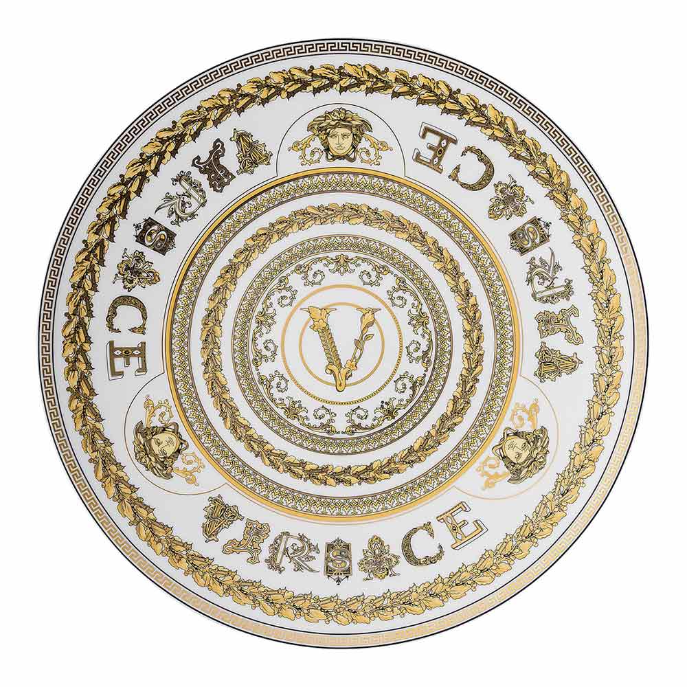 El mantel individual Virtus Gala de Versace es una auténtica celebración del lujo y el refinamiento , elaborado a partir de porcelana preciosa . Su diseño distintivo combina un color brillante con decoraciones doradas visualmente impactantes, enriquecidas con detalles barrocos y el icónico logotipo "V" de Versace, un símbolo de elegancia atemporal.