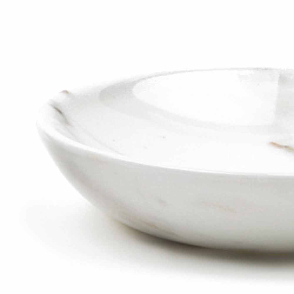 Platillo redondo caracterizado por un diseño elegante y refinado, fabricado en mármol precioso de alta calidad . Es una pieza única ya que cada bloque de mármol utilizado se diferencia de los demás por vetas y matices.