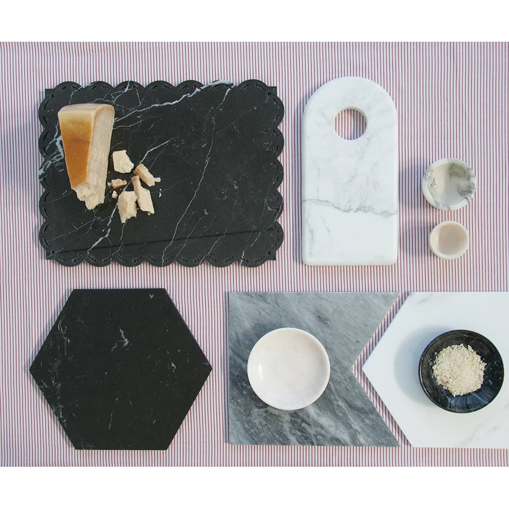 Platillo de diseño redondo en mármol blanco, gris, negro o rosa Made in Italy.