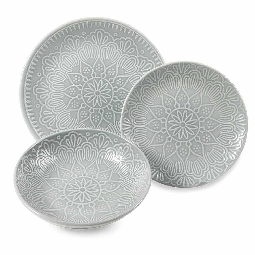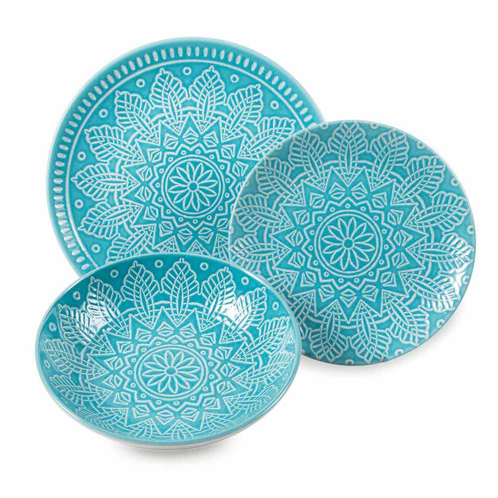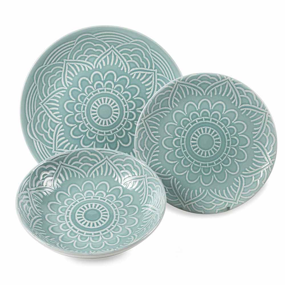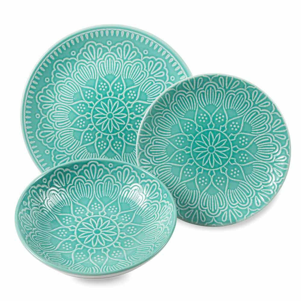 Juego de platos de gres de colores y modernos, con vajilla de diseño de 18 piezas.