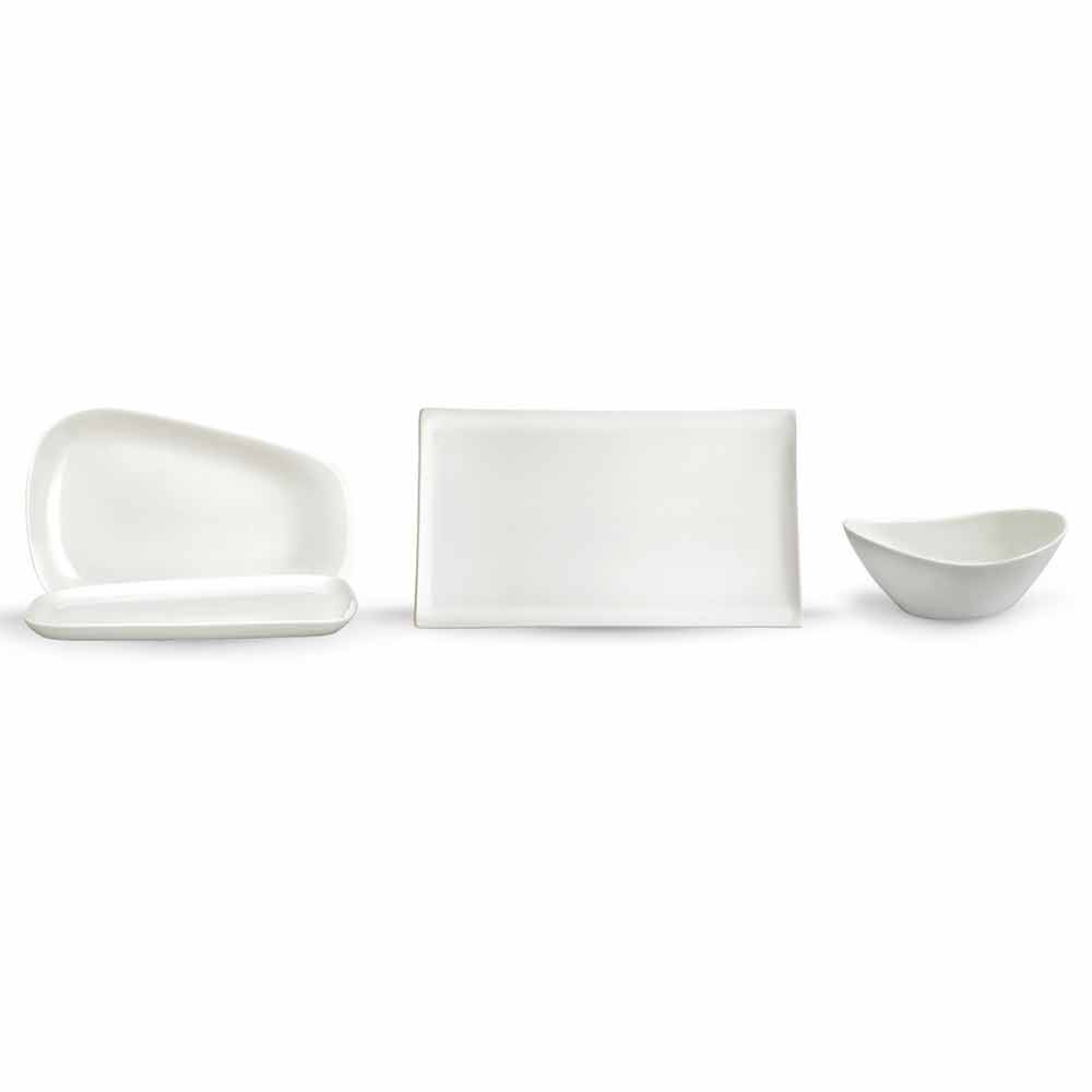 Conjunto para servir en porcelana blanca marfil, diseño de mesa moderno y elegante, 14 piezas.