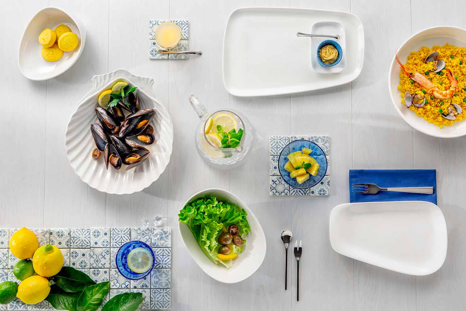 - Versatilidad : los productos han sido especialmente diseñados para adaptarse a cualquier tipo de comida y ambiente, de modo que puedan usarse tanto para aperitivos, primeros platos, segundos platos o postres, dando espacio a la imaginación y la creatividad. Una colección versátil para combinaciones ilimitadas.