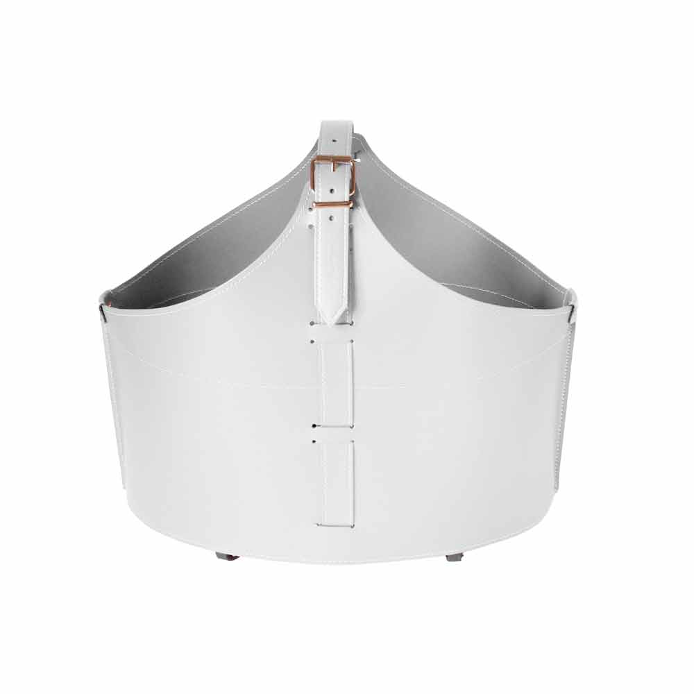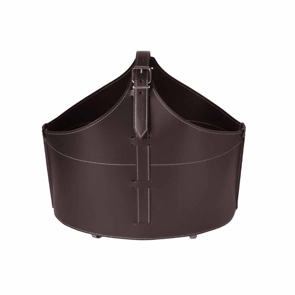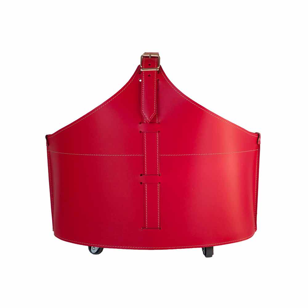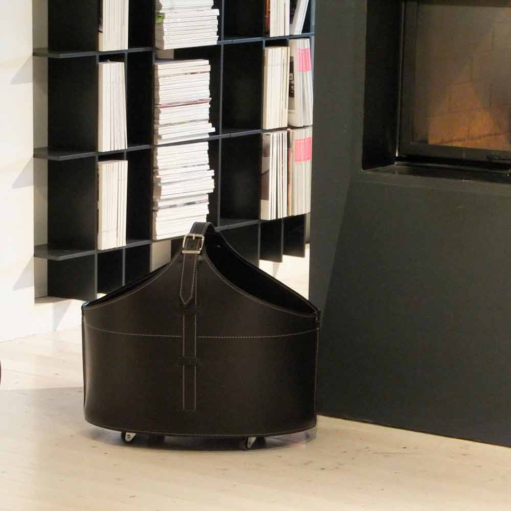 Porta leña moderno de cuero regenerado con ruedas modelo Fabia