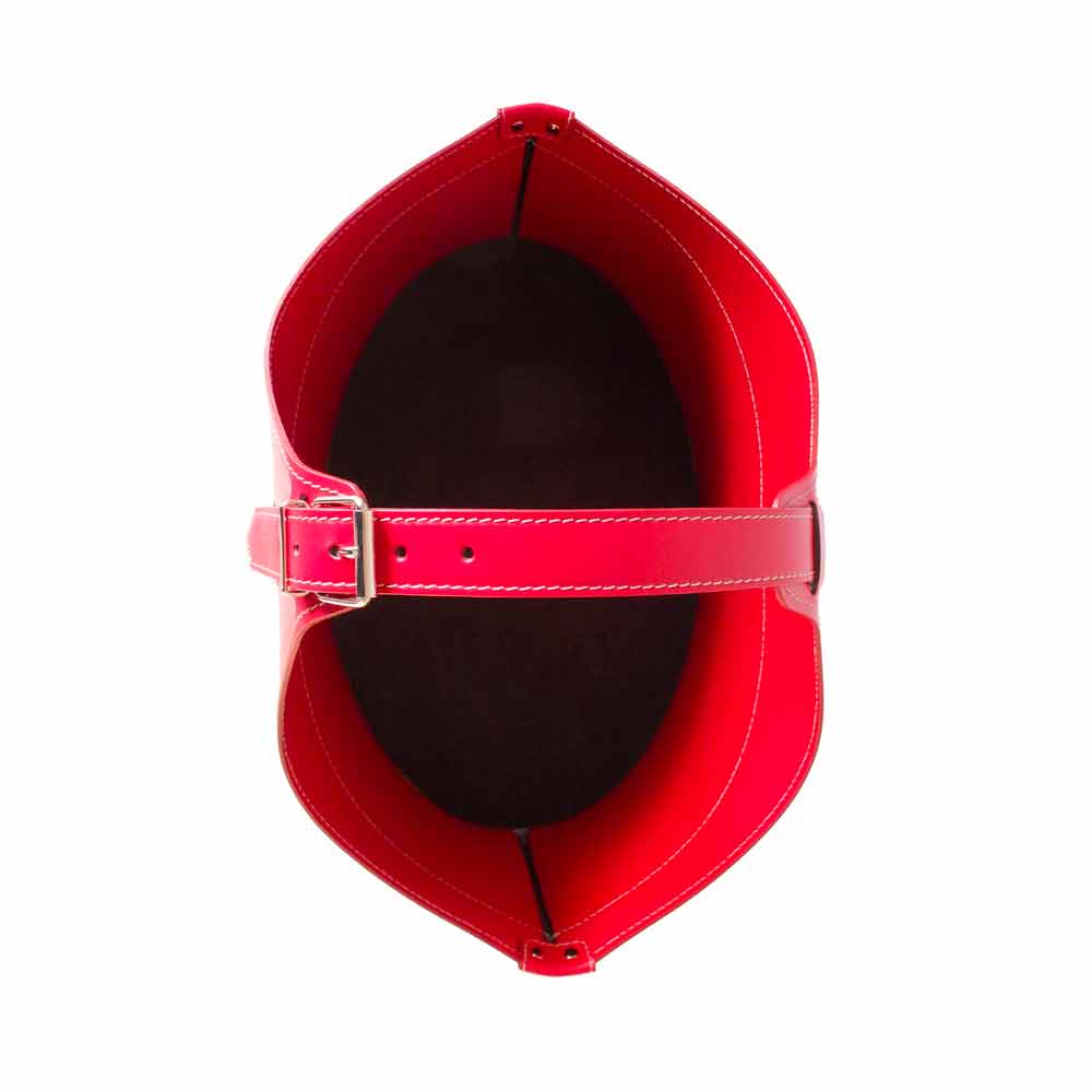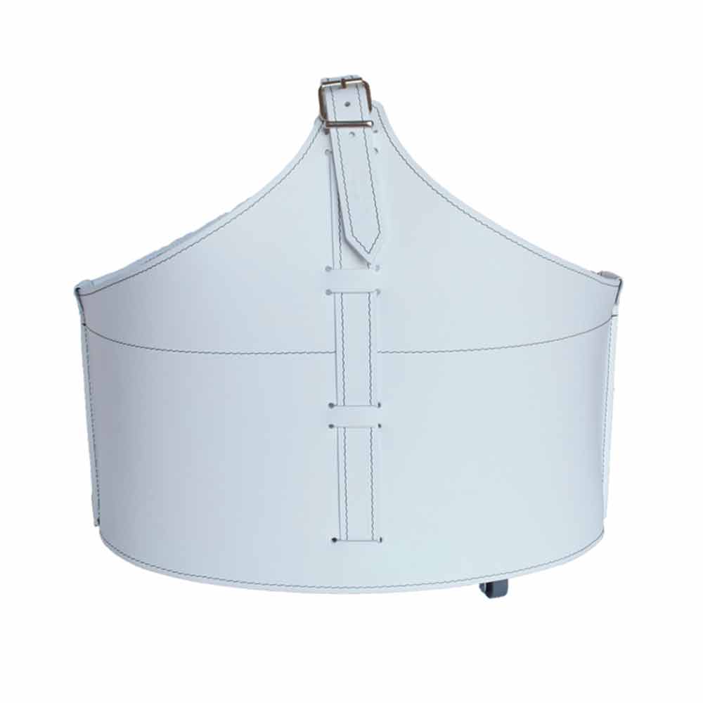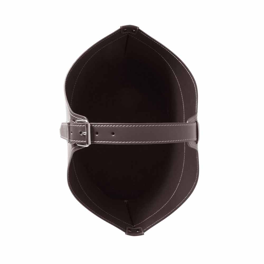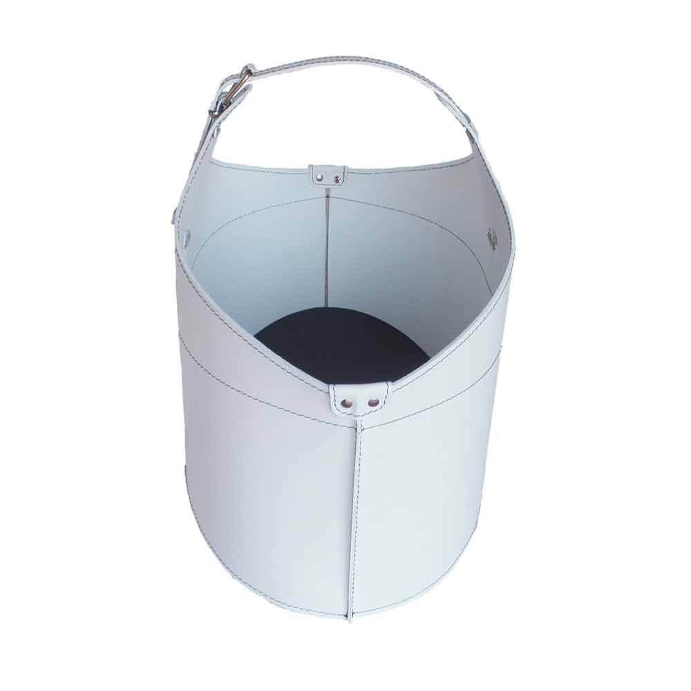 Porta leña moderno de cuero regenerado con ruedas modelo Fabia