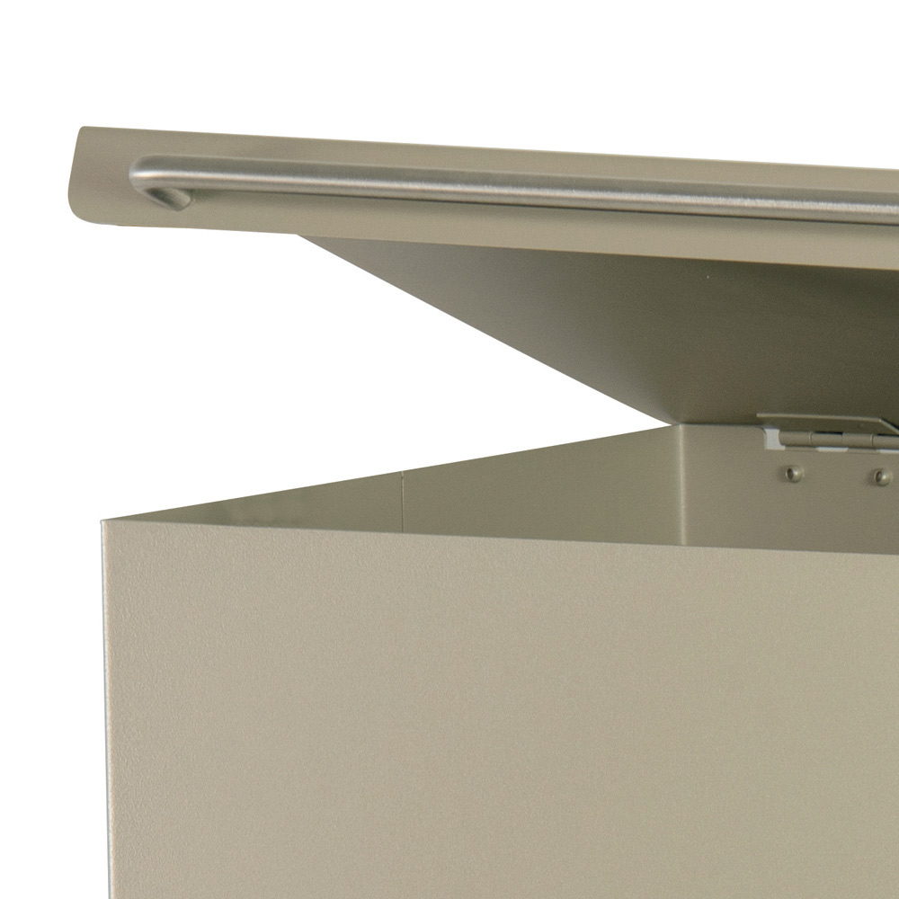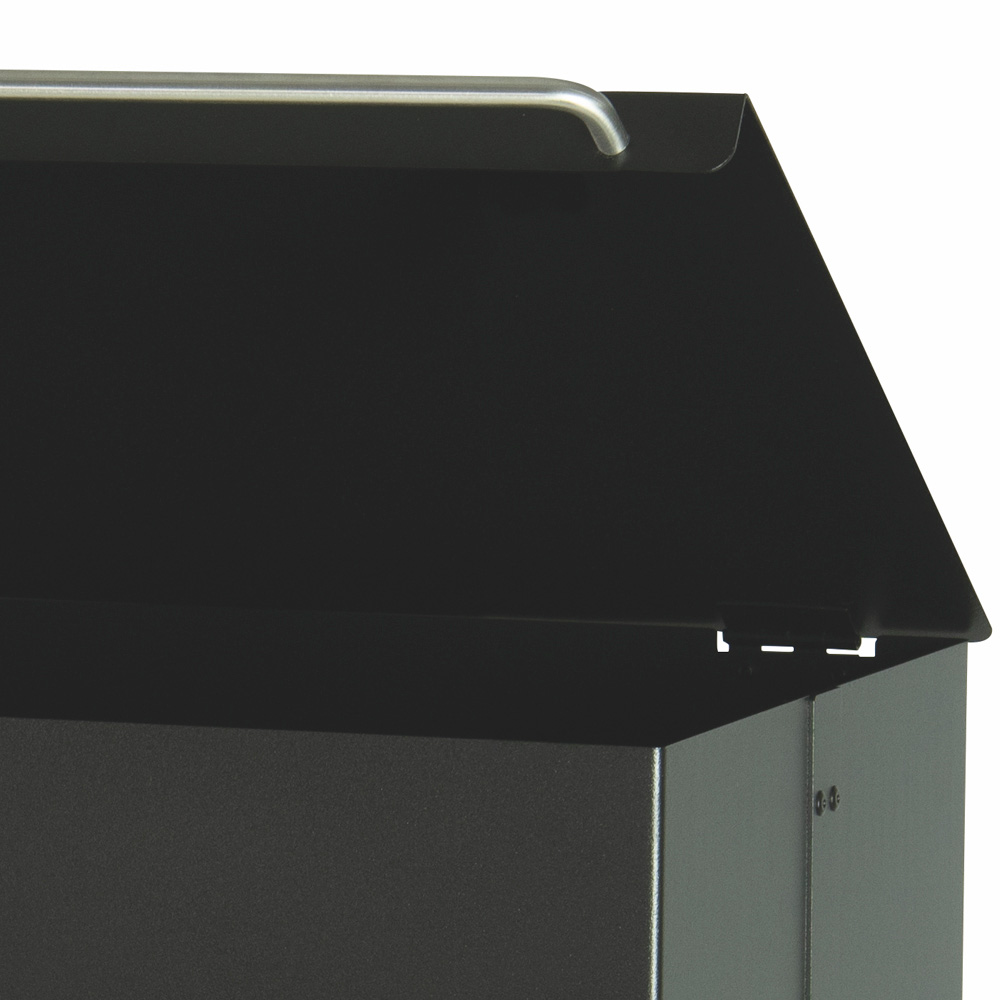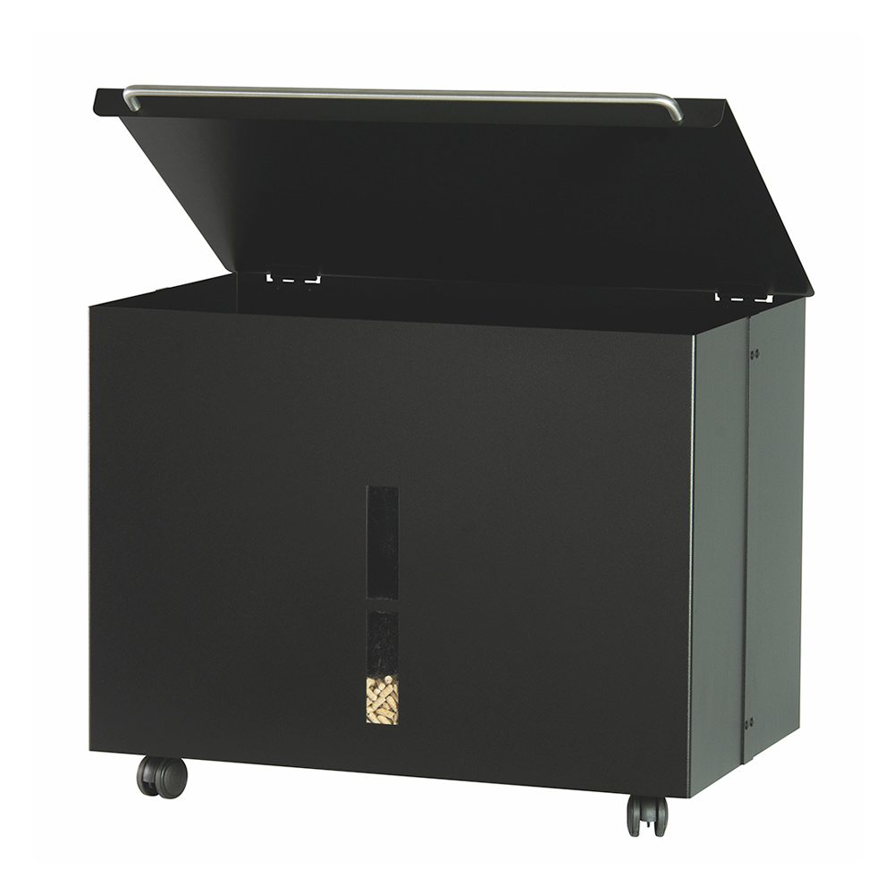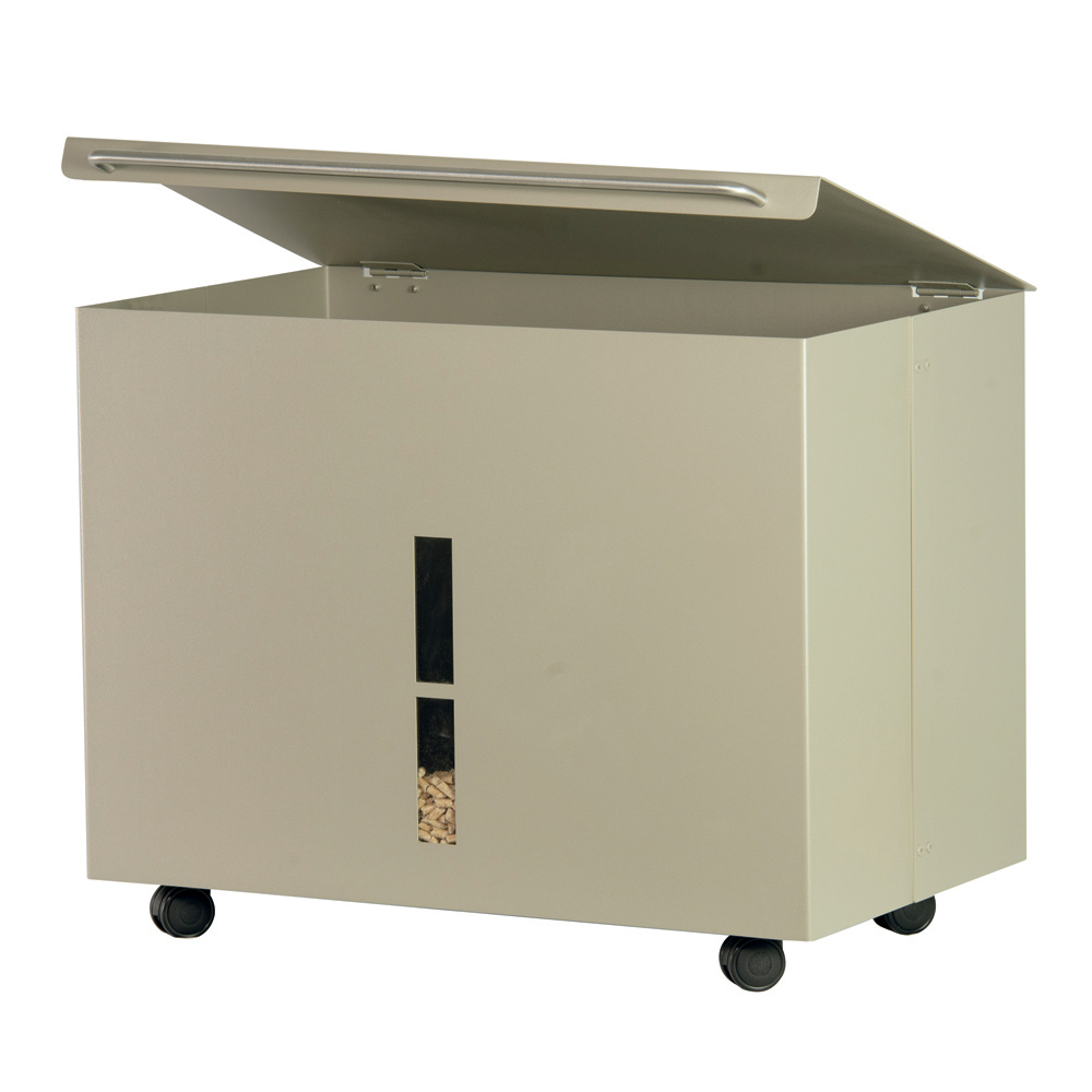 La tapa superior , combinada con un asa delgada, garantiza que el contenido sea fácilmente accesible y esté protegido del polvo. Una pequeña ventanilla en la parte delantera del contenedor no sólo añade un acento visual intrigante, sino que también le permite controlar el nivel de pellets, lo que garantiza que nunca se quedará sin combustible.