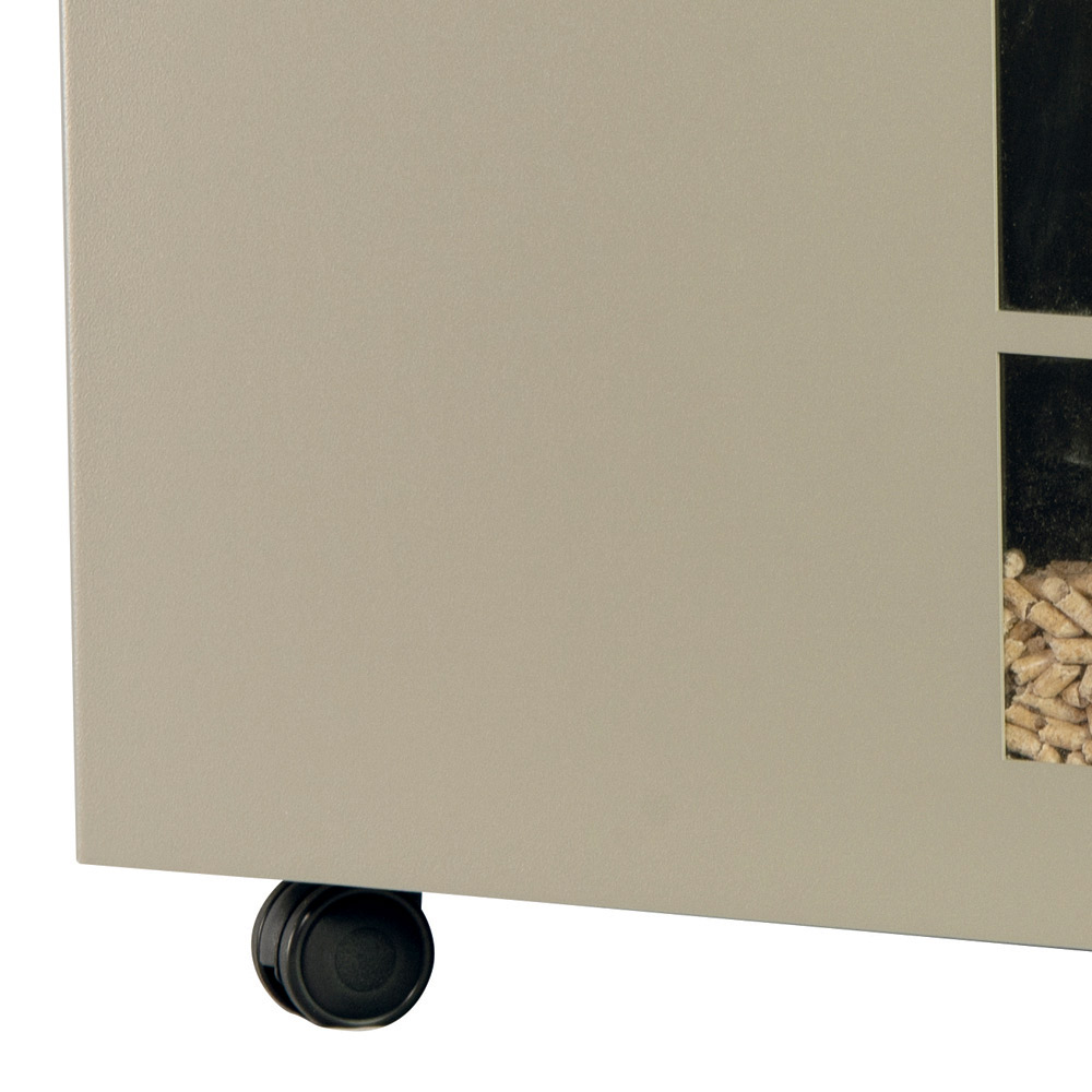 Equipado con ruedas , este soporte para pellets se puede mover con facilidad, lo que garantiza que repostar su chimenea o estufa de pellets sea siempre una actividad sencilla y sin esfuerzo. Su diseño es tan práctico como agradable a la vista, lo que lo convierte en un complemento perfecto para cualquier ambiente moderno y con estilo.
