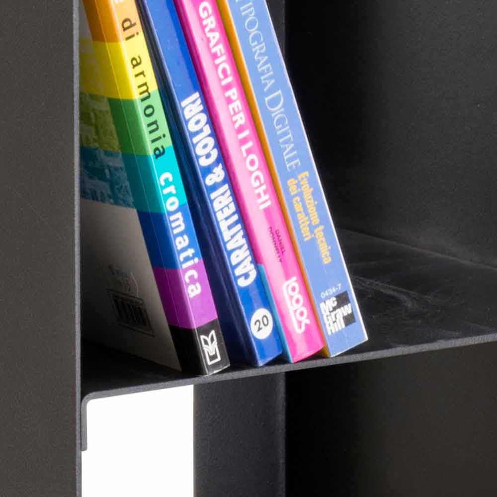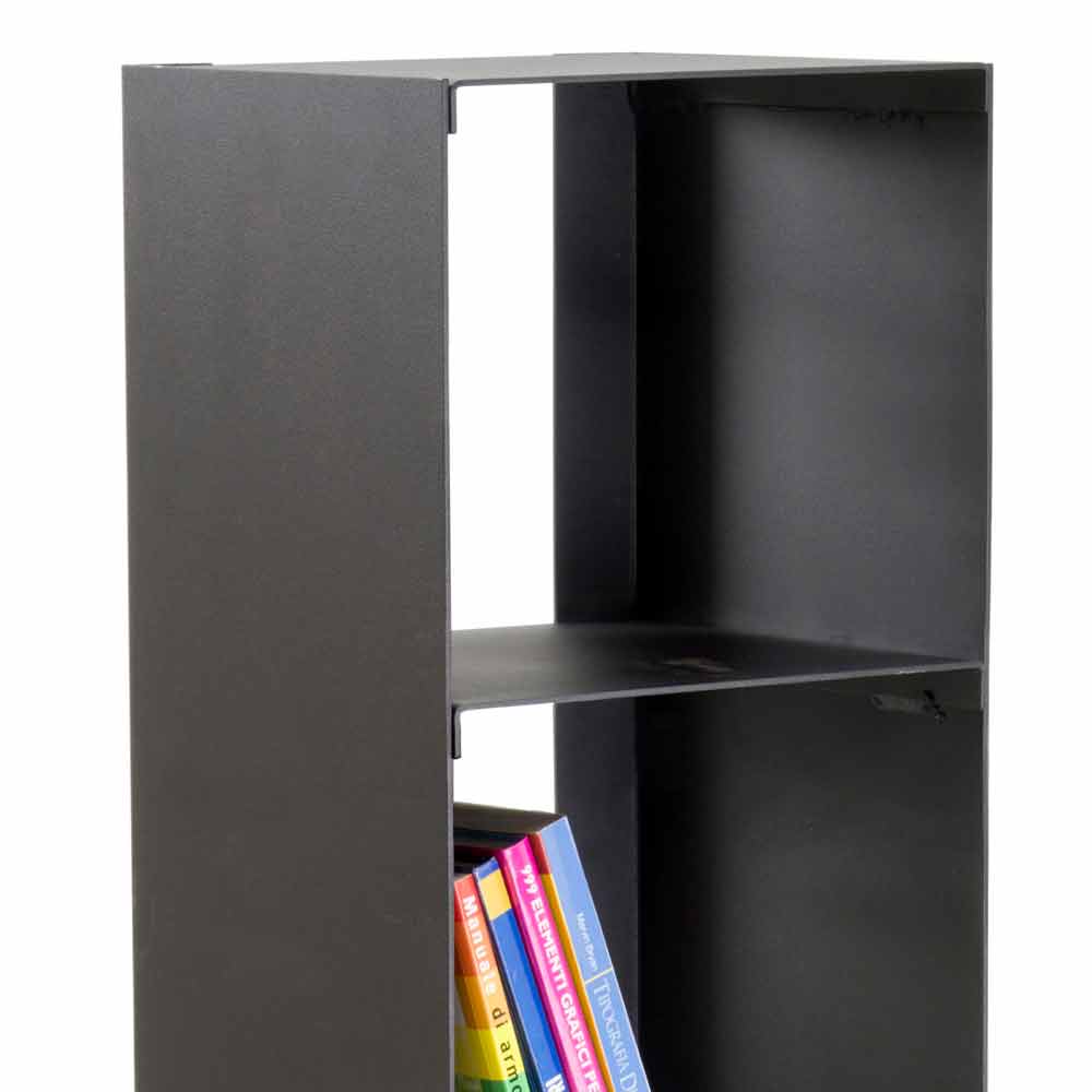 Porta leños interior en acero negro con estantes, diseño moderno hecho en Italia.