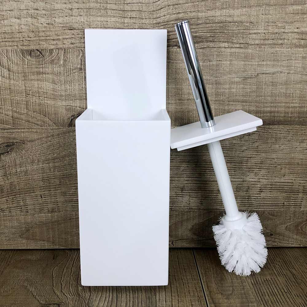 Portaescobillas de inodoro en corian blanco o con inserto de diseño negro, de alta calidad made in Italy.