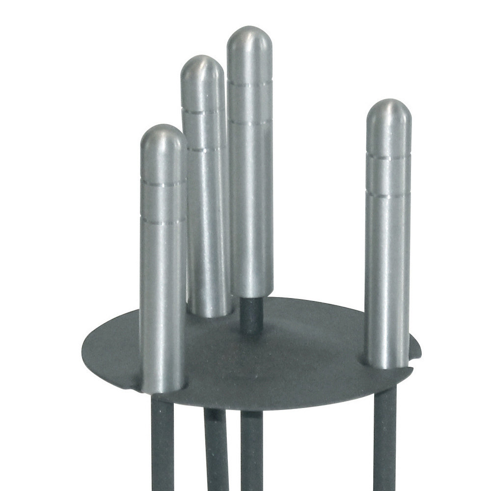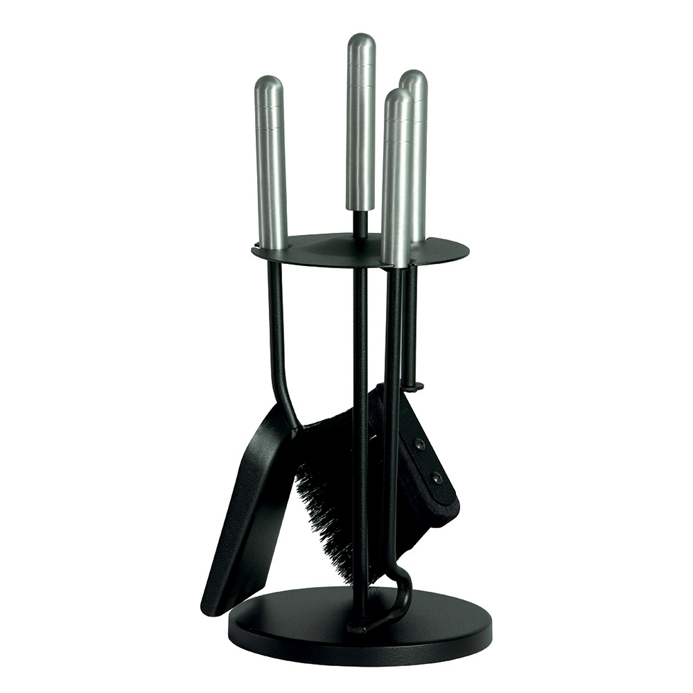 El marco delgado pero duradero sostiene elegantemente 3 accesorios, todos con asas resistentes que garantizan un fácil manejo y durabilidad . El diseño compacto permite colocar el conjunto junto a la chimenea sin ocupar espacio, mientras que la base redonda garantiza estabilidad y orden.