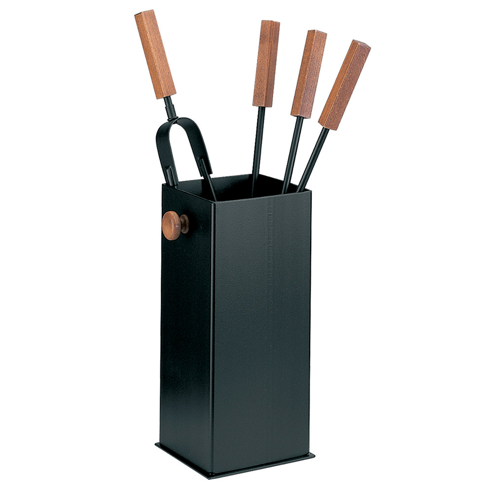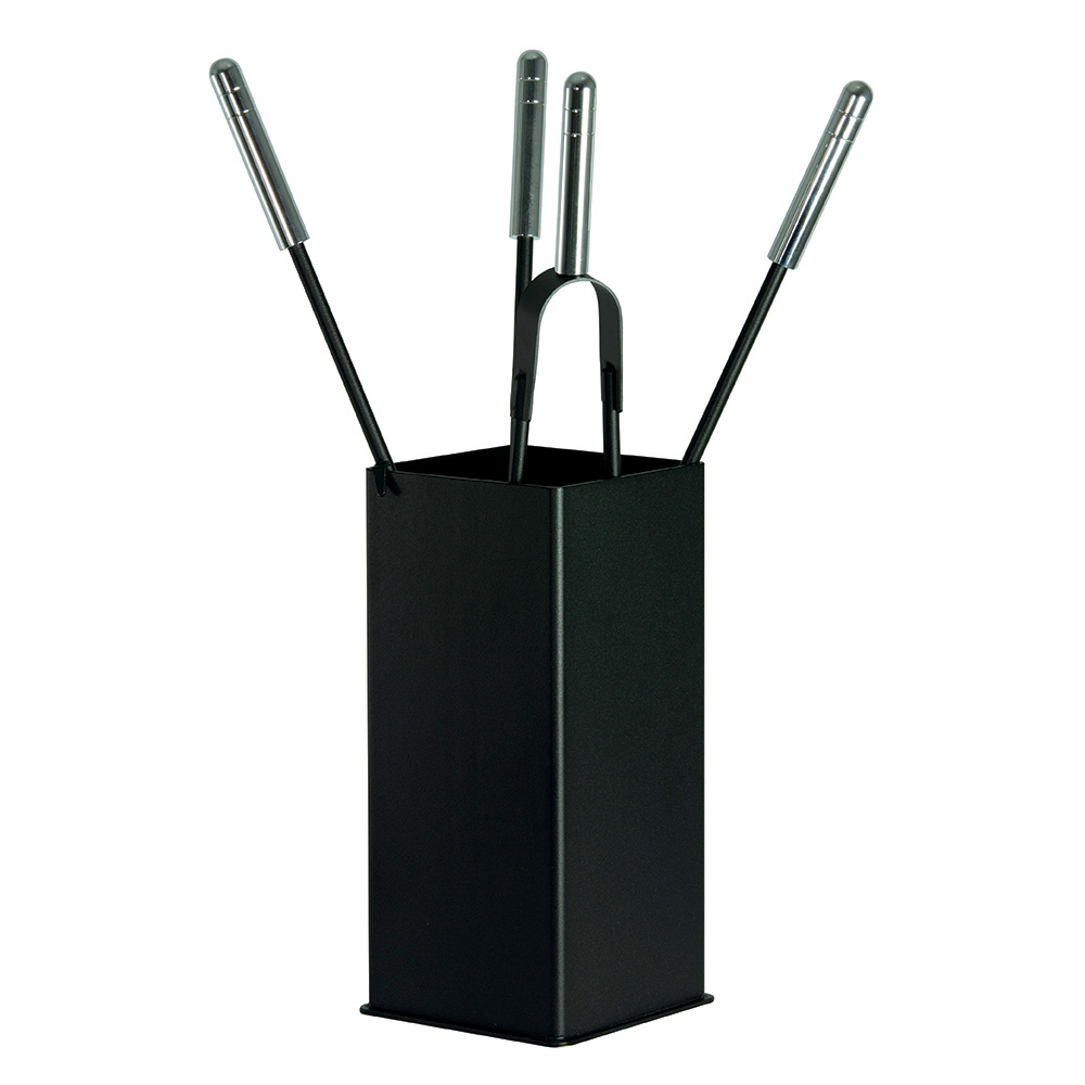 El juego incluye todo lo necesario para mantener el fuego acogedor y seguro. Las asas proporcionan un agarre seguro y cómodo . El diseño compacto del soporte permite colocarlo en cualquier rincón sin ocupar espacio, mientras que el refinado acento del botón en la cara añade un detalle visual distintivo.