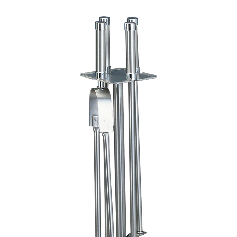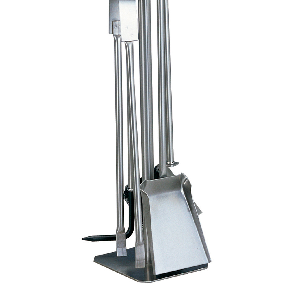 El juego consta de cuatro piezas esenciales, cada una con un mango largo para un manejo seguro y cómodo del fuego. El diseño delgado y la elegante base cuadrada garantizan que las herramientas estén siempre al alcance, mientras que el aspecto minimalista se adapta a cualquier entorno, desde el más tradicional hasta el moderno.