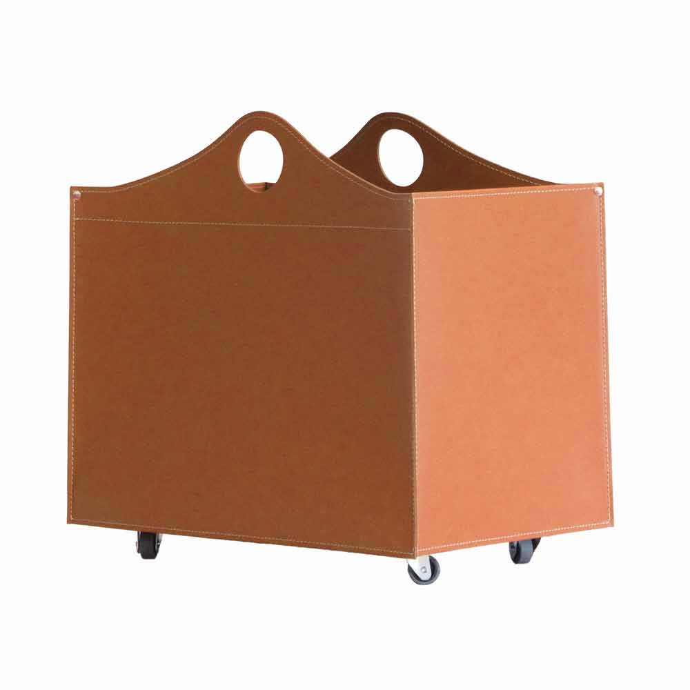 Portalegna piel regenerada con ruedas WoodBag hechas en Italia