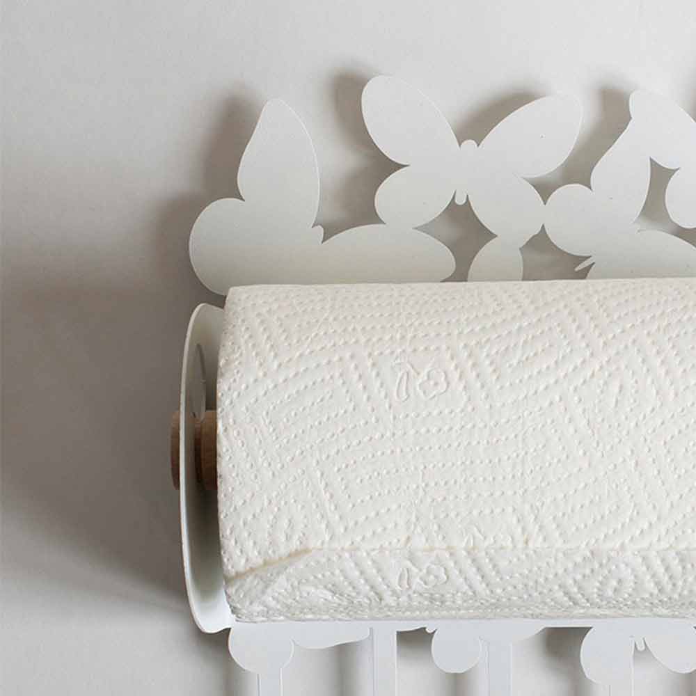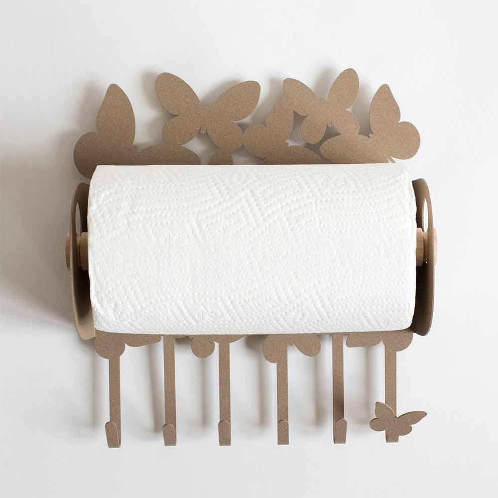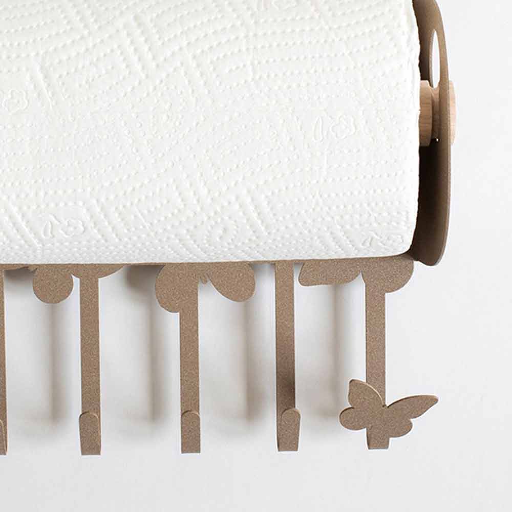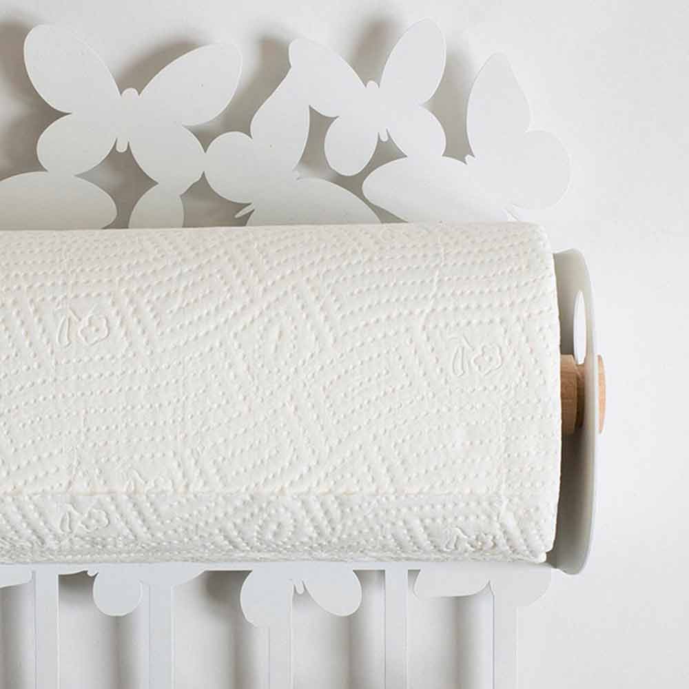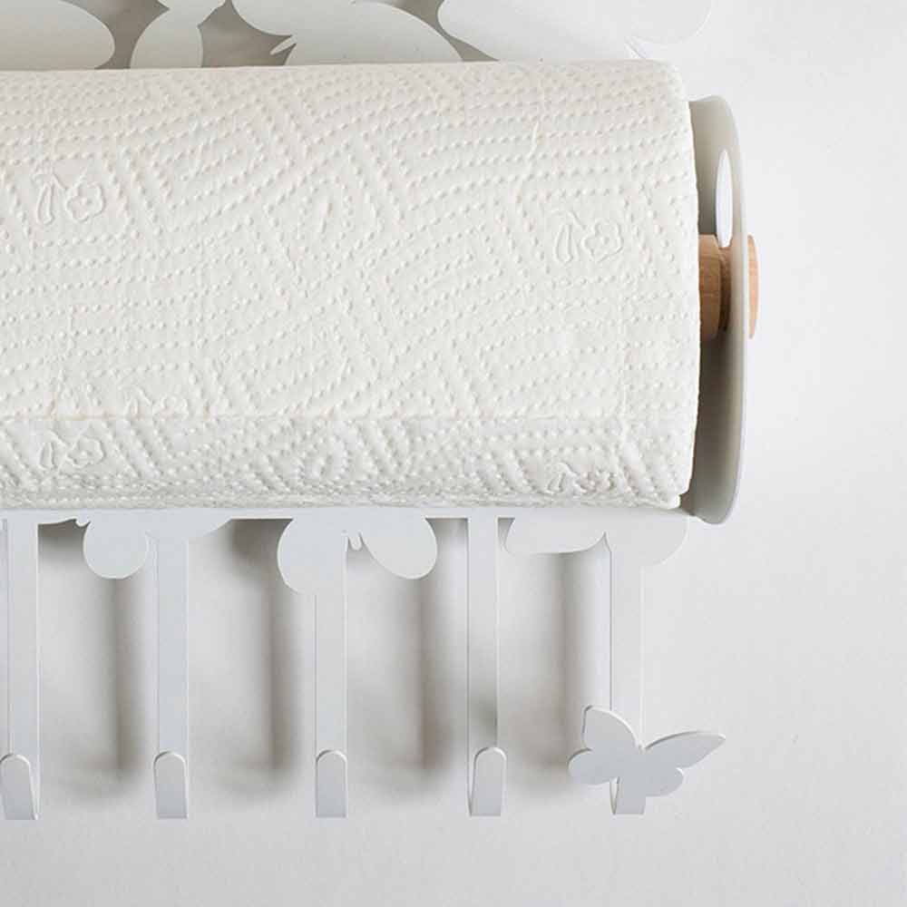 Porta rollos de cocina de pared de diseño moderno en hierro blanco o beige hecho a mano en Italia.