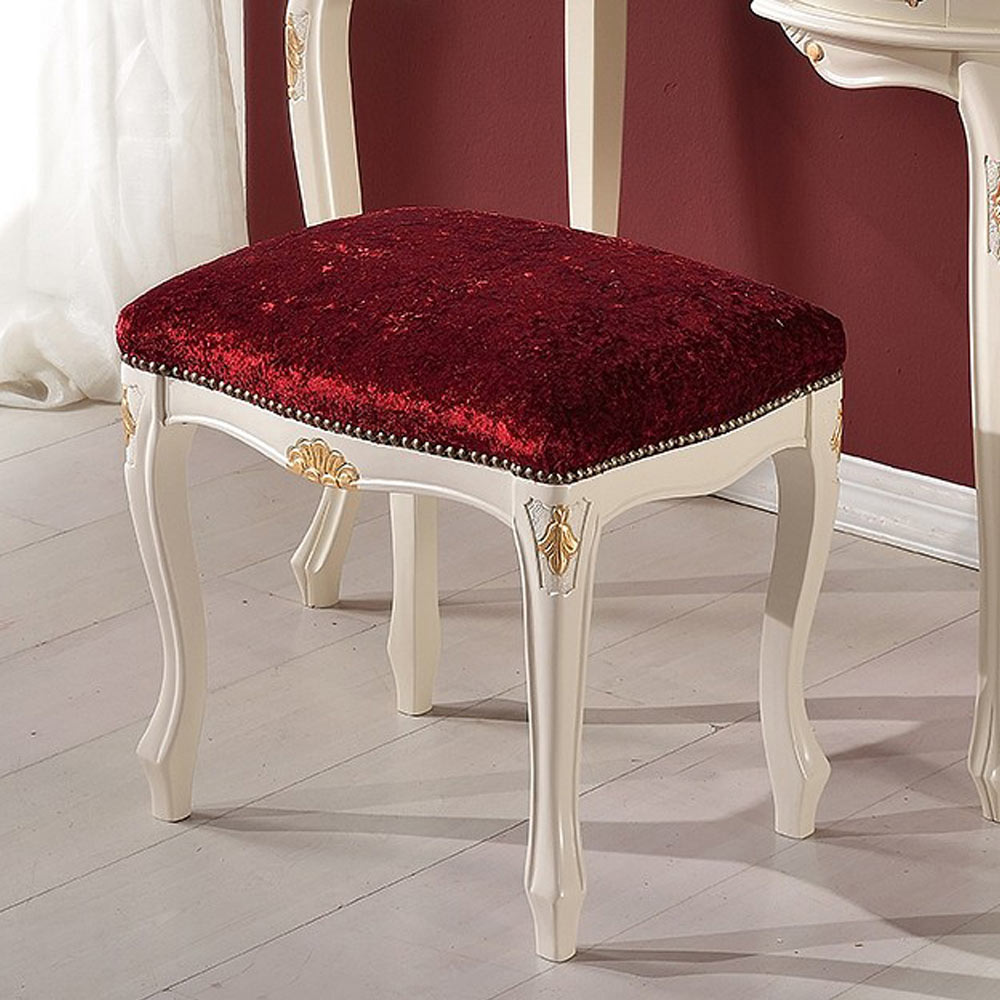 Puf de estilo clásico en madera de nogal y tejido Made in Italy.