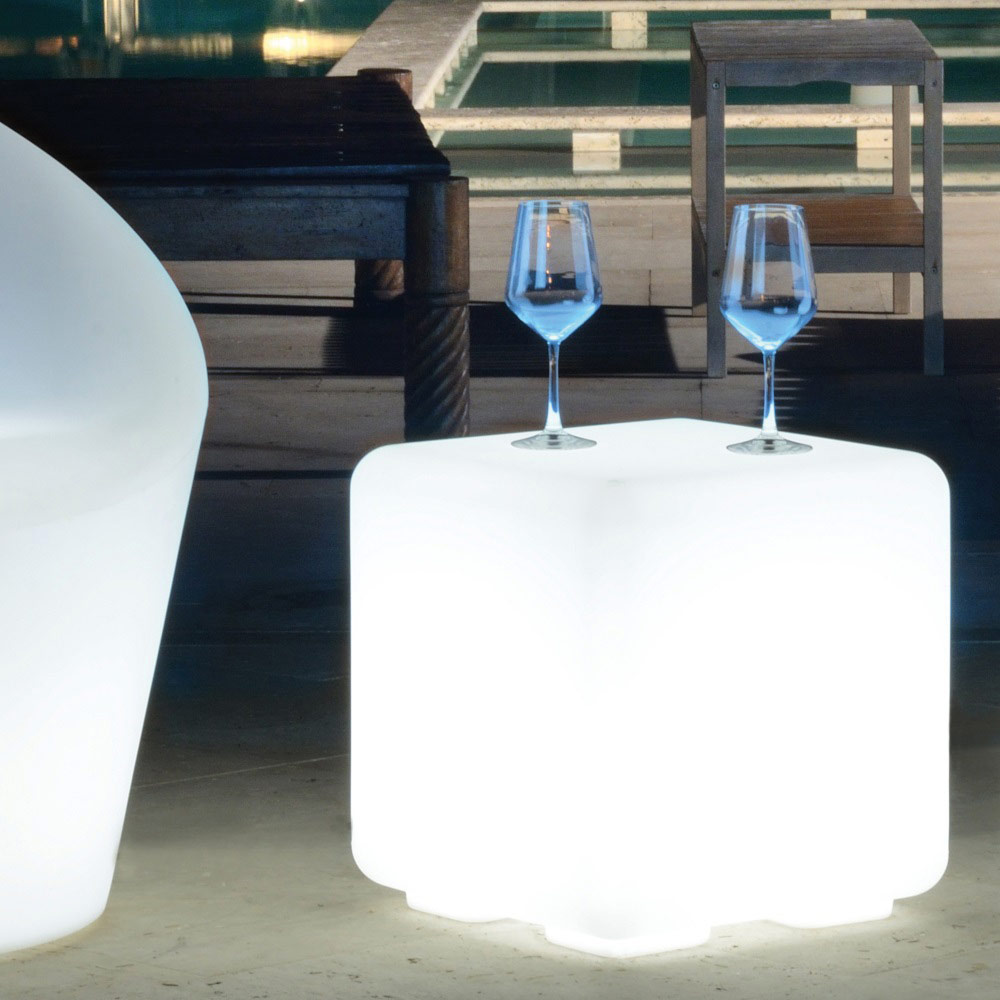 polietileno coloreado también disponible en la versión con luz. Un mueble que se adapta a cualquier ambiente: en casa, en una sala de espera, en un jardín, junto a la piscina y muchas otras situaciones.