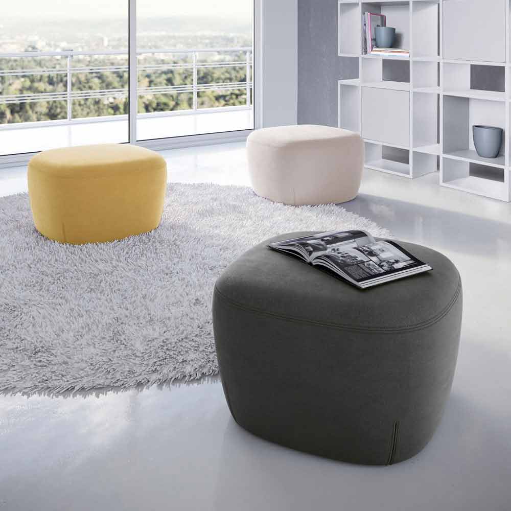 Puf cuadrado para salón tapizado y tapizado en tejido Made in Italy.