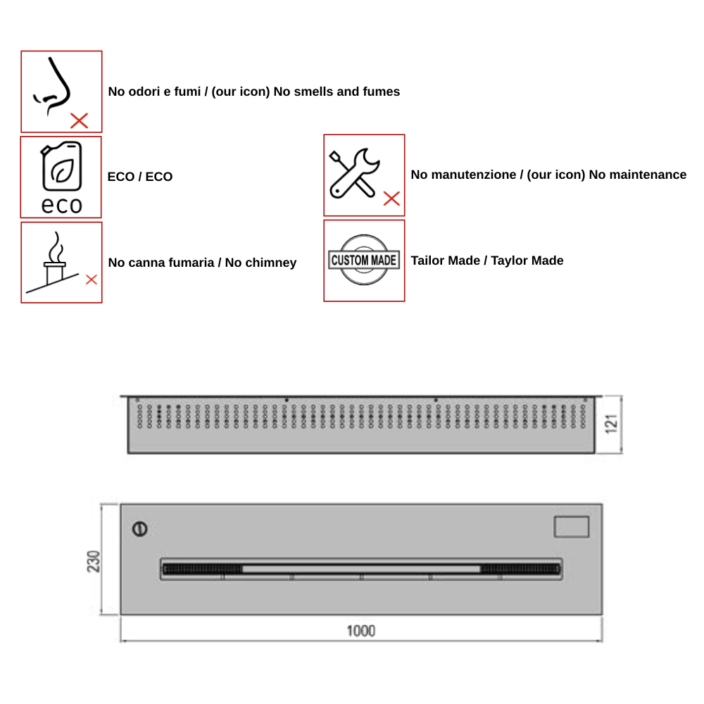 Quemador bioetanol de encastre potencia 3,6kW modelo Aron 100