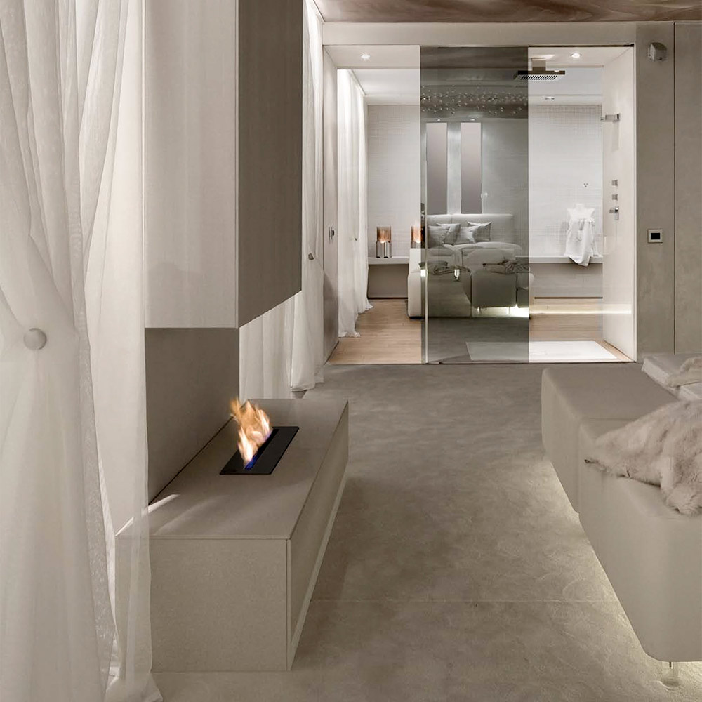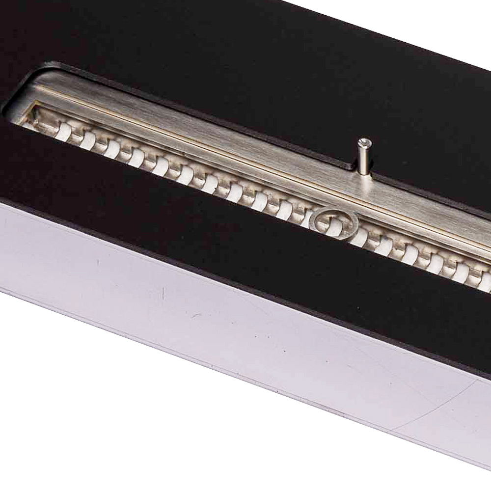 Este hermoso quemador lineal en acero negro representa una solución estética innovadora y de alta tecnología, capaz de adaptarse a la decoración de su hogar. De hecho, se puede integrar en cualquier contexto ambiental, haciéndolo más emotivo y acogedor, y es apto para ser insertado en chimeneas tradicionales o empotrado en la pared o en superficies planas.