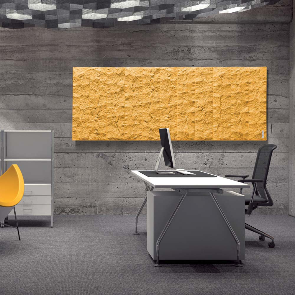 efecto bajorrelieve realza la superficie irregular de la piedra y cuenta con una producción íntegramente