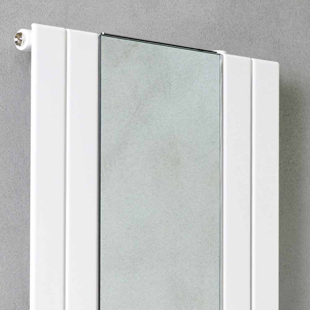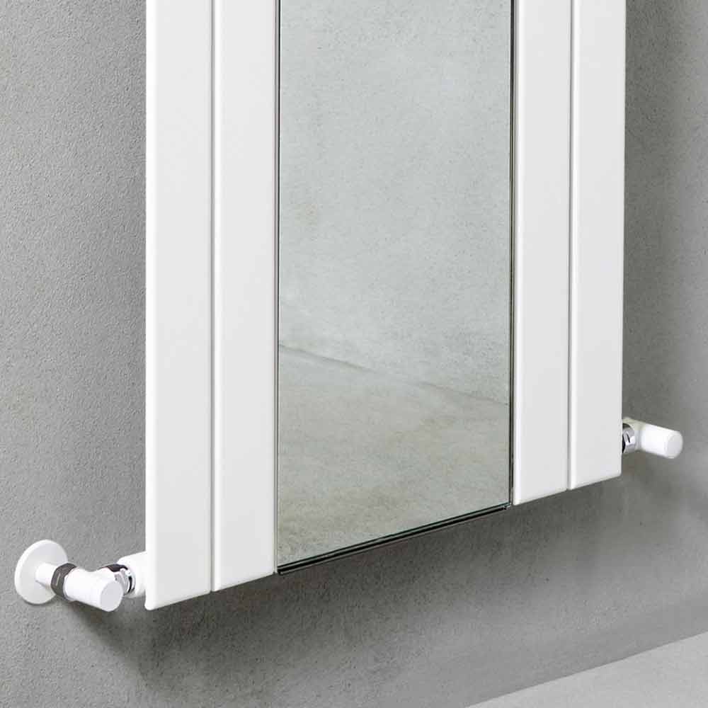Radiador de pared hidráulico de diseño vertical en acero con espejo, fabricado en Italia.