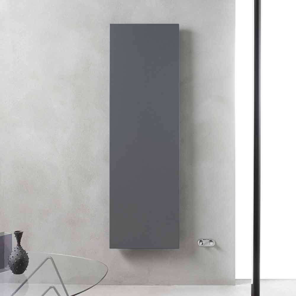 Radiador vertical de pared de diseño moderno en acero gris pizarra fabricado en Italia.