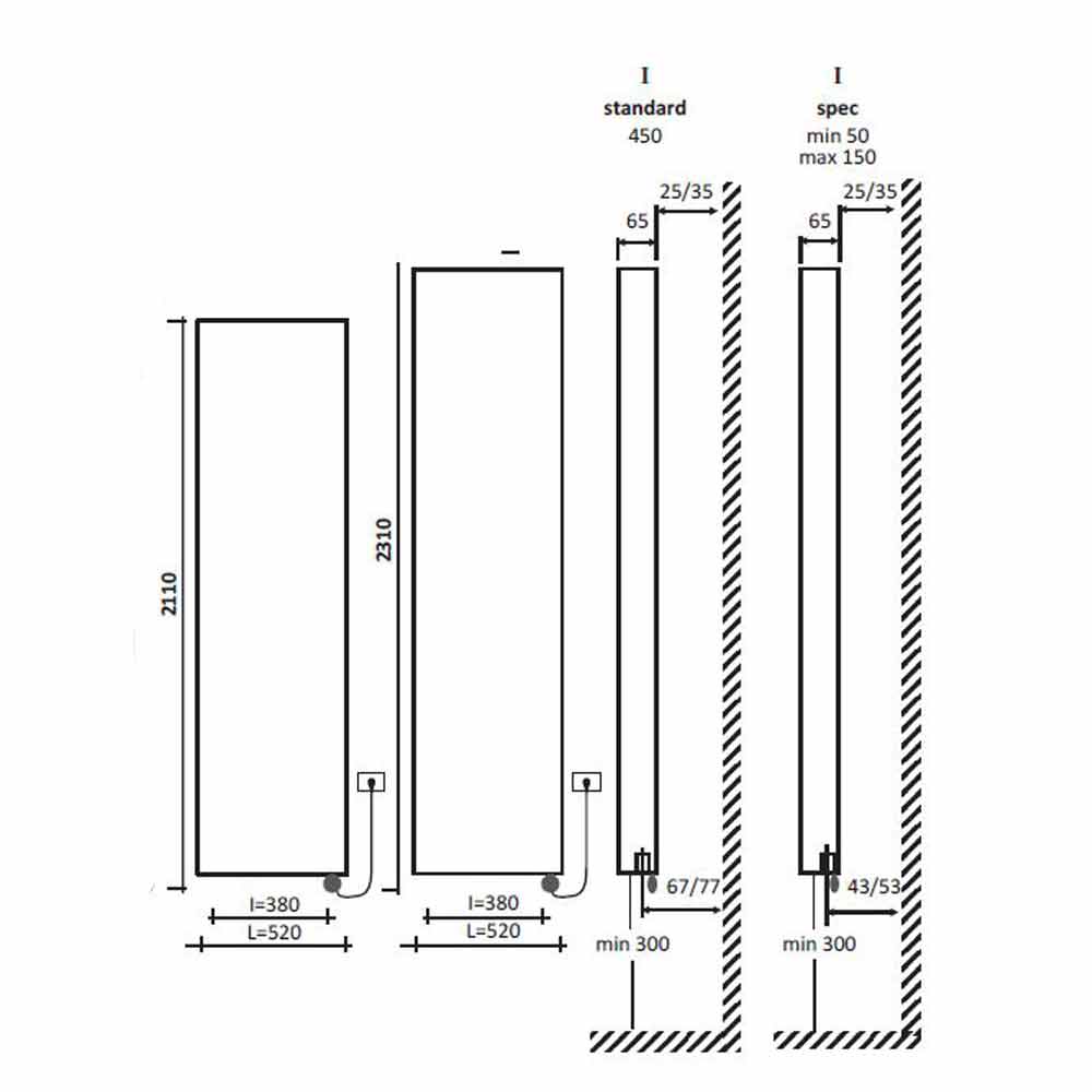 A la altura hay que añadir el termostato de 110 mm. Fuente de alimentación monofásica de 230 voltios. Disponible en