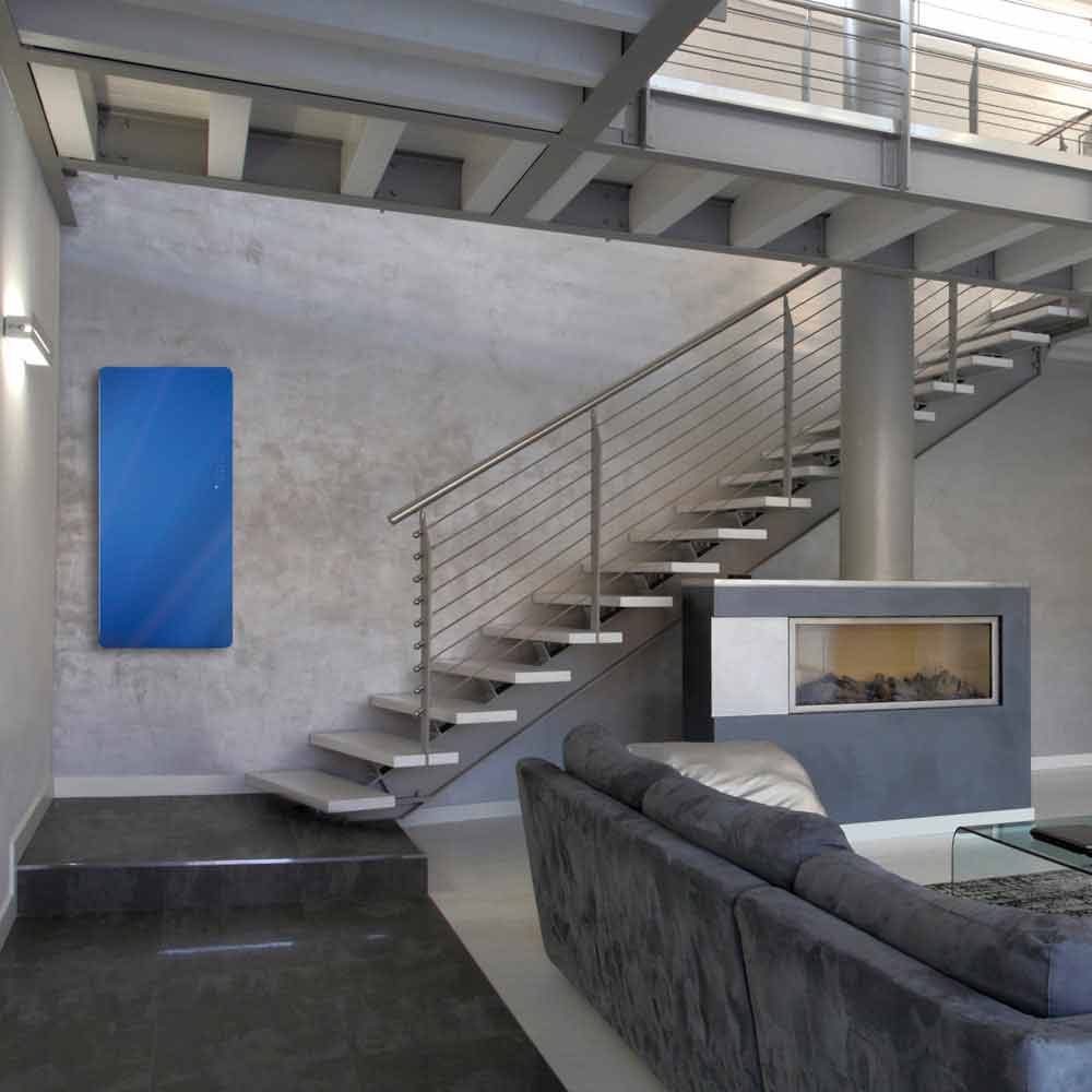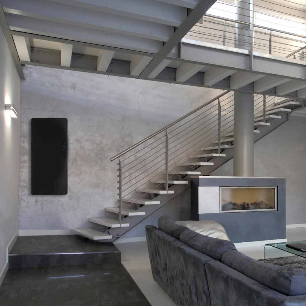 4- Seguridad : Al estar construida en vidrio templado, cuenta con la más alta certificación en vidrio de seguridad. La construcción inserta una película plástica adhesiva que permite que el vidrio obtenga la certificación europea B1 con prestaciones iguales a las de un vidrio laminado irrompible. Los soportes especialmente diseñados evitan, una vez que el producto ha sido instalado, su liberación involuntaria, de acuerdo con las normas de seguridad alemanas para radiadores. Este radiador eléctrico también permite seleccionar una temperatura superficial baja (50 °C) con el fin de evitar el contacto con superficies excesivamente altas de niños o personas mayores que puedan tocarlas o apoyarse inadvertidamente sobre ellas.