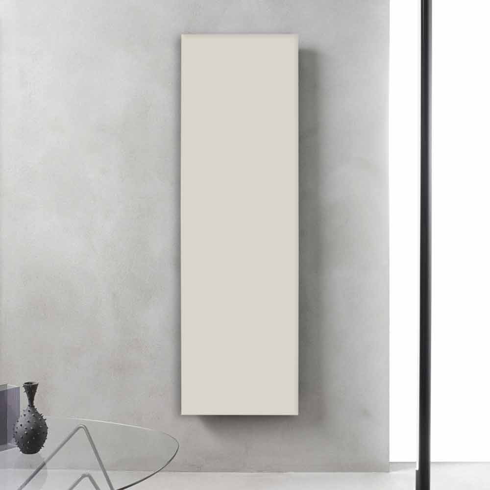 Radiador de pared eléctrico vertical de diseño moderno en acero blanco grisáceo fabricado en Italia.