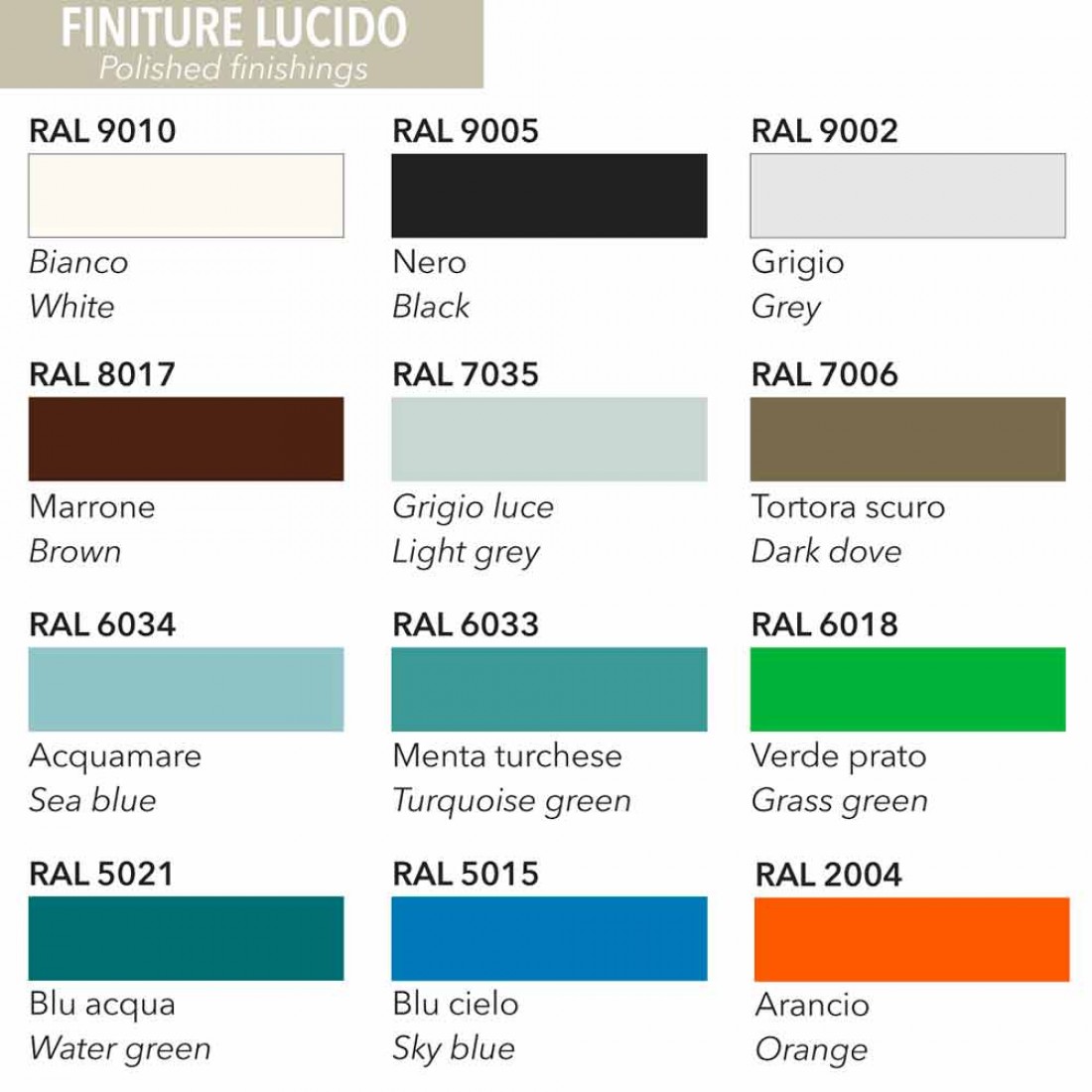 El producto está disponible en diferentes colores: visualiza la carta de colores e indica en el recuadro correspondiente el código del artículo deseado.