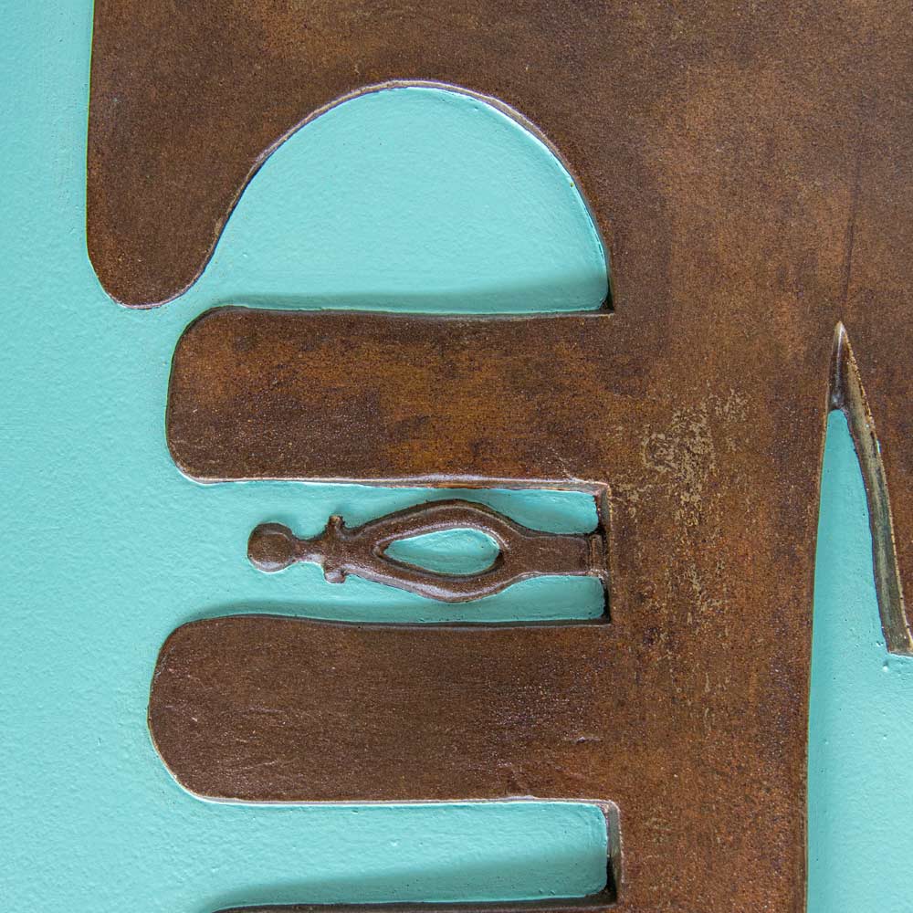 - Góndola con hierro corten y clavo rojo.